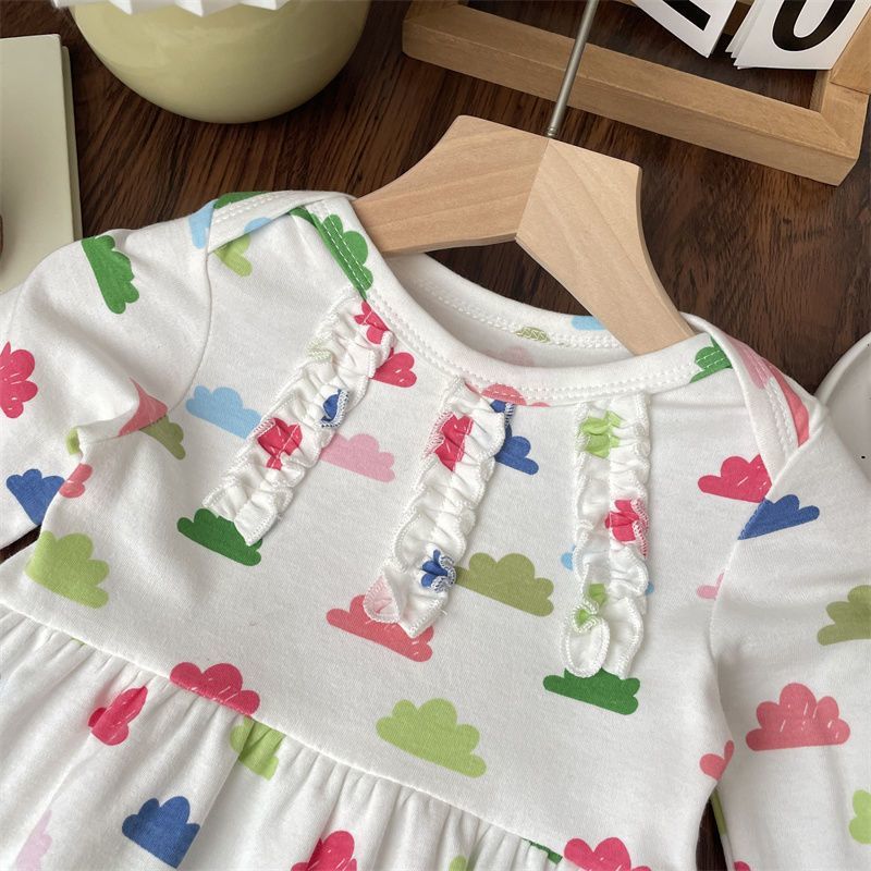 2025 귀여운 아기 원피스 봄과 가을 면화 0-6 개월-1-2-3 세 소녀 아기 긴팔 치마 어린이