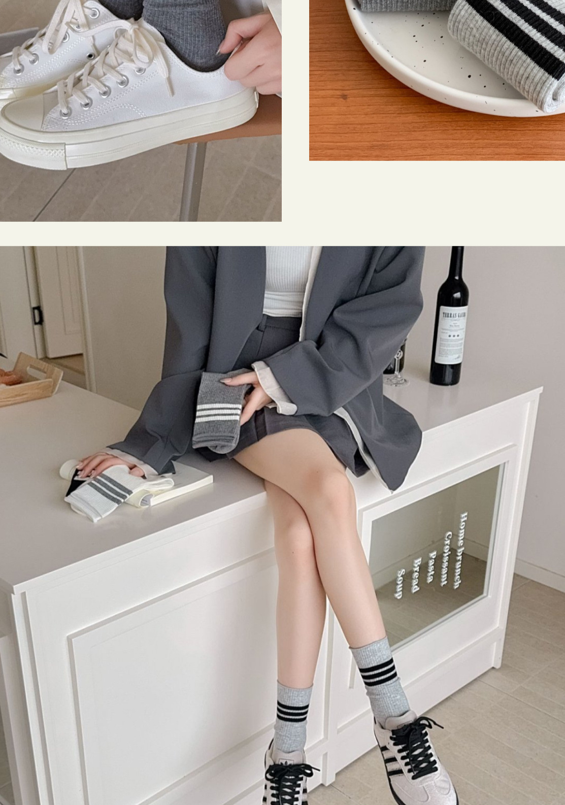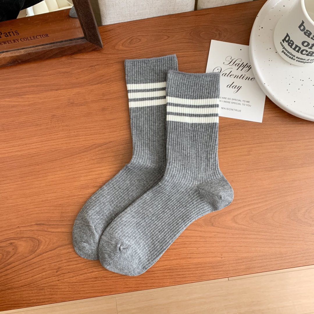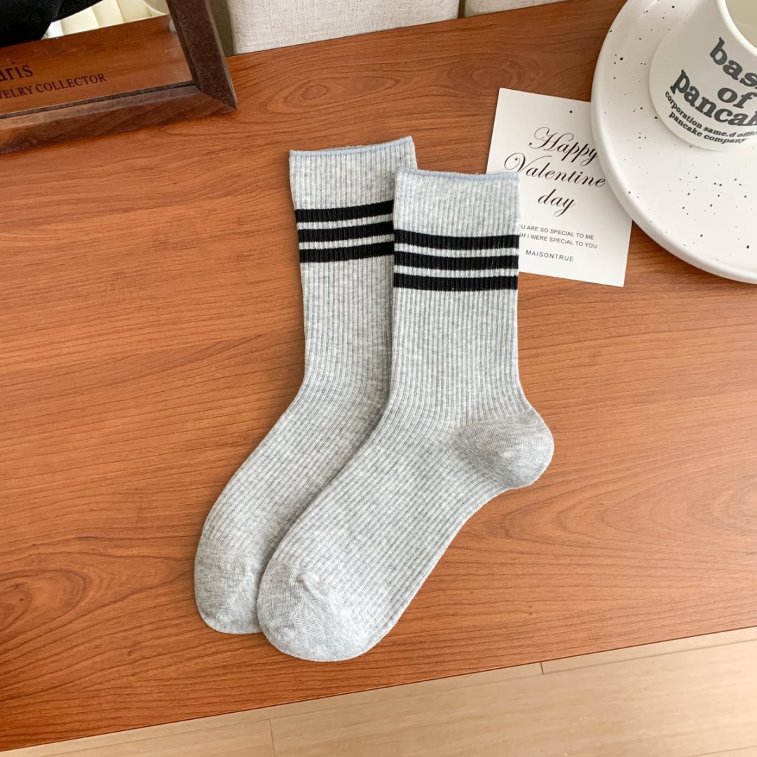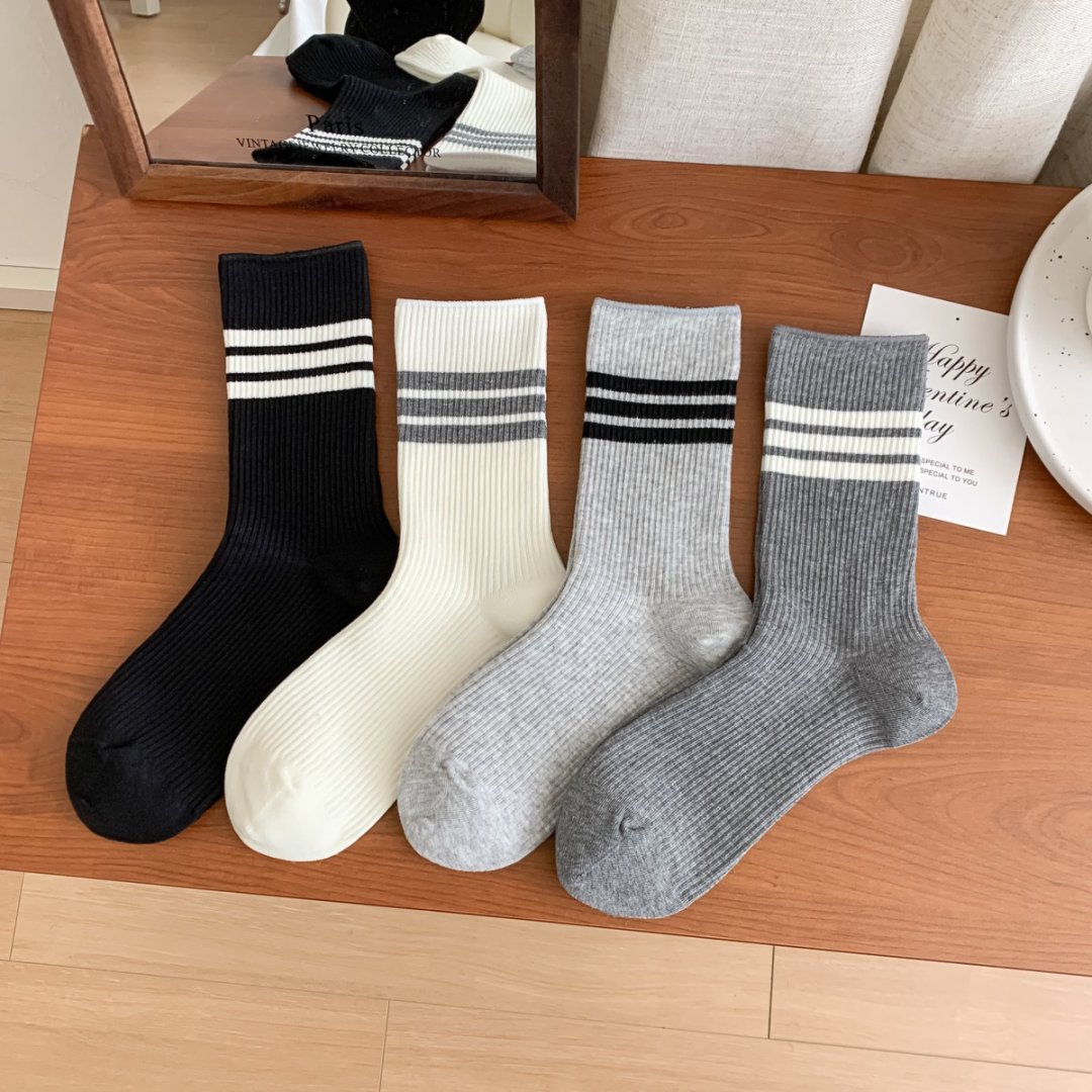 양말 25 새로운 주지 양말 봄과 여름 새로운 중간 튜브 양말 스트라이프 높은 색상 가치 캐주얼 대학 스타일 더블 바늘 여성용 양말