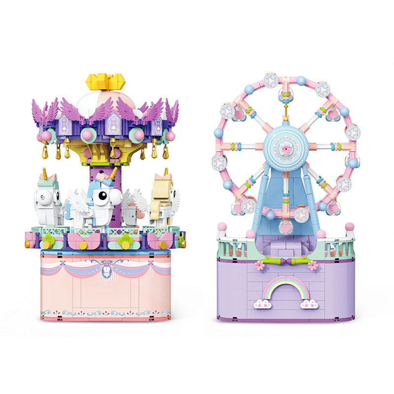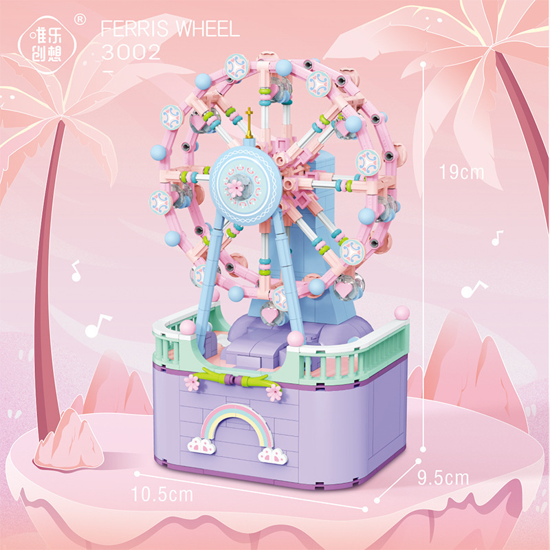 새로운 Vile 창조적 인 미니 작은 입자 건물 블록 장난감 관람차 중국 건물 블록 음악 상자 생일 행사