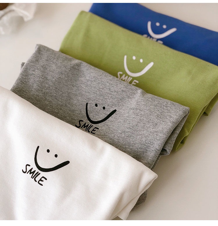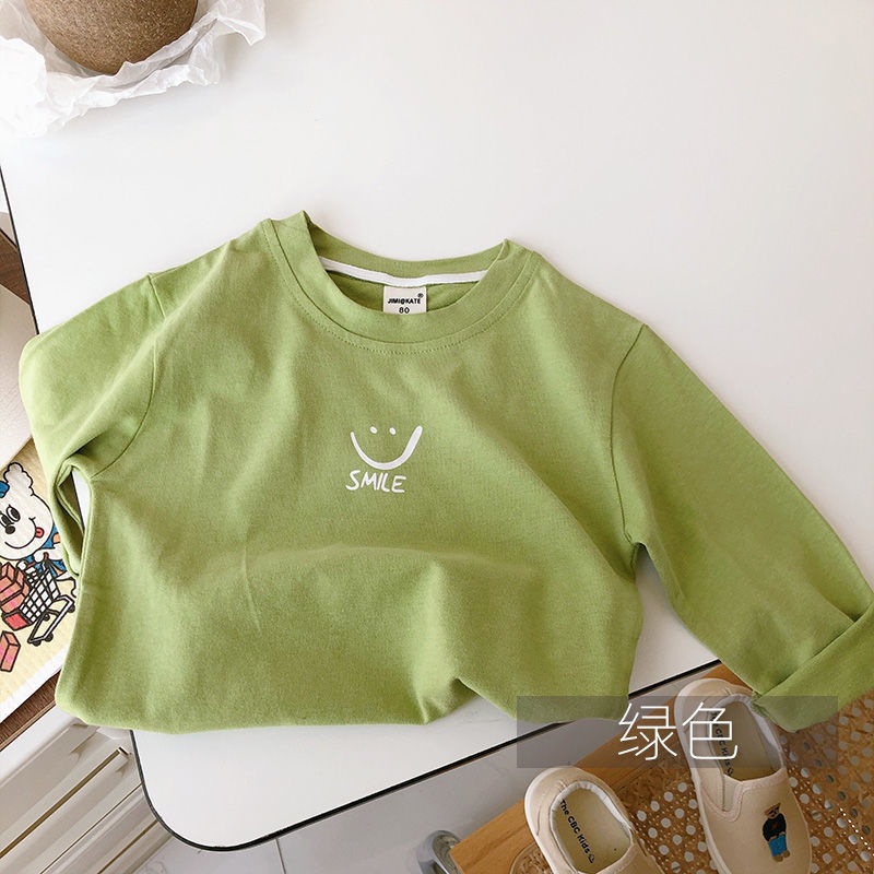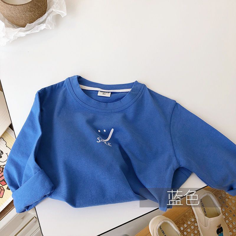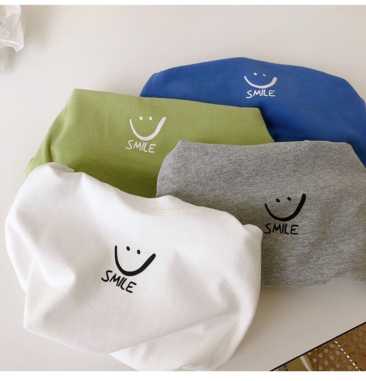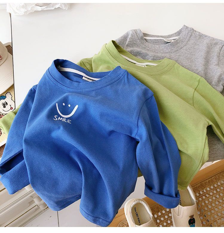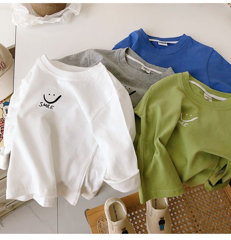 봄과 가을 남녀 아동복 티셔츠 아기의 서양식 어린이 성격 유행 브랜드 한국 편지 만화 스마일리 유행스토어 가기