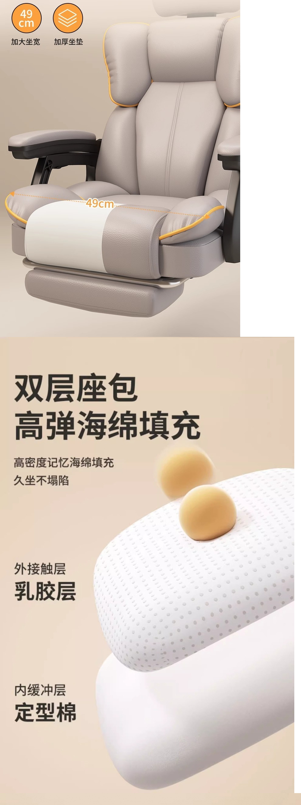 • [슬라이드 레일 팔걸이 + 발판] 회색과 노란색 + 머리 받침 + 두꺼운 라텍스