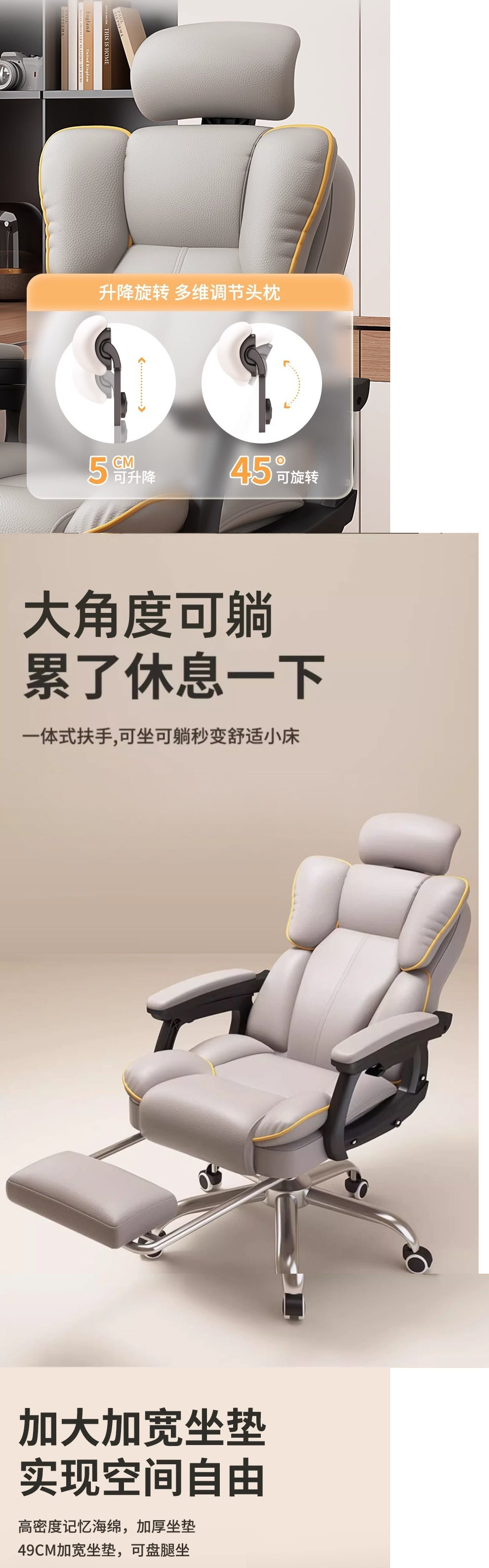 • [슬라이드 레일 팔걸이] 극세사 가죽 - 회색 및 노란색 + 머리 받침 + 두꺼운 스폰지