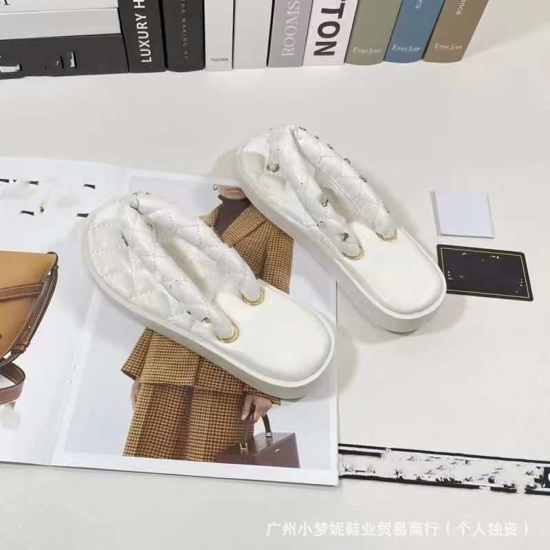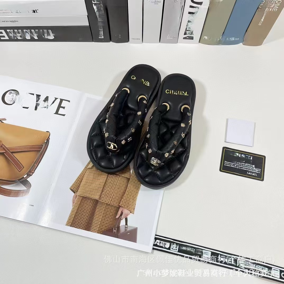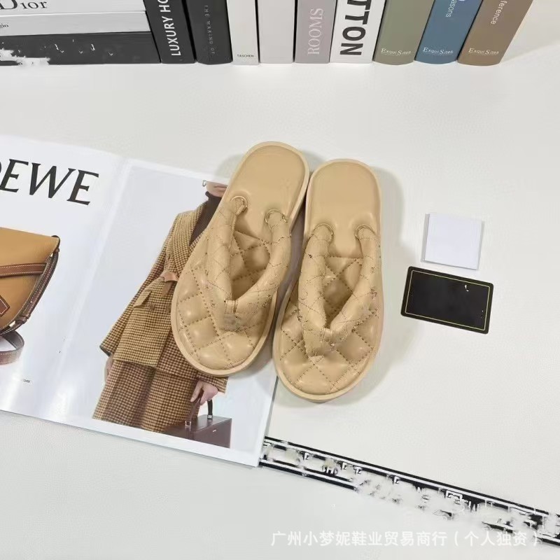 하이 퀄리티 작은 향기로운 통통 클램프 플랫 플립 플롭 여성 다이아몬드 격자 인터넷 축하 샌들 여름 새로운 스타일 외부 비치 슈즈