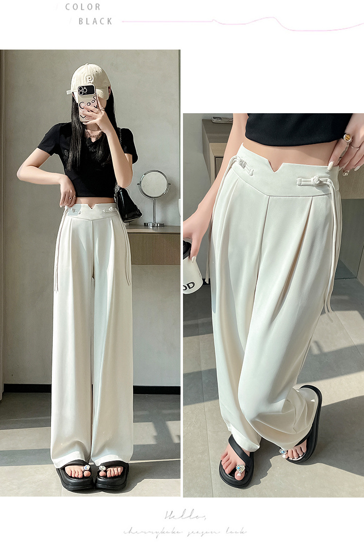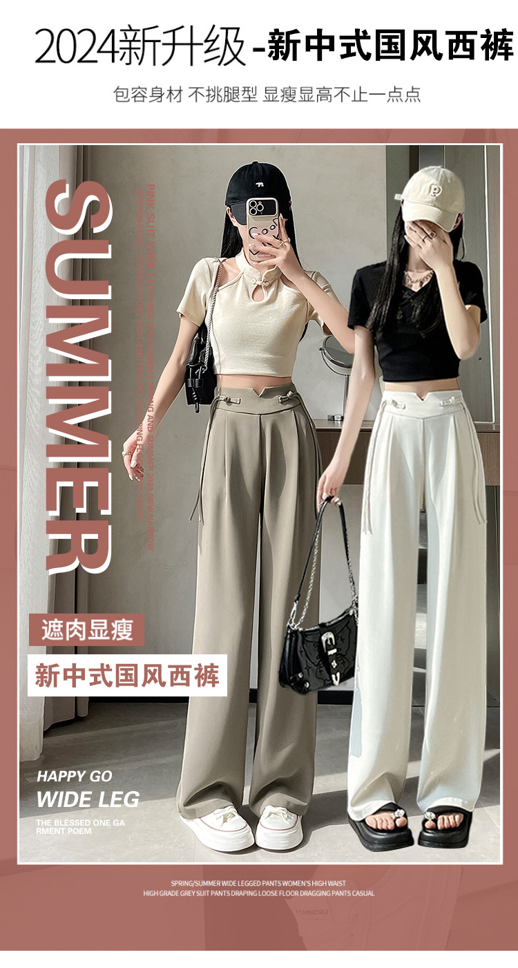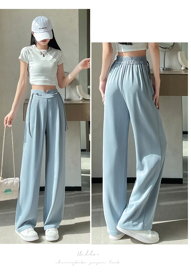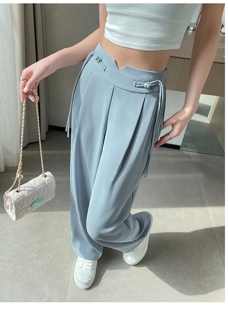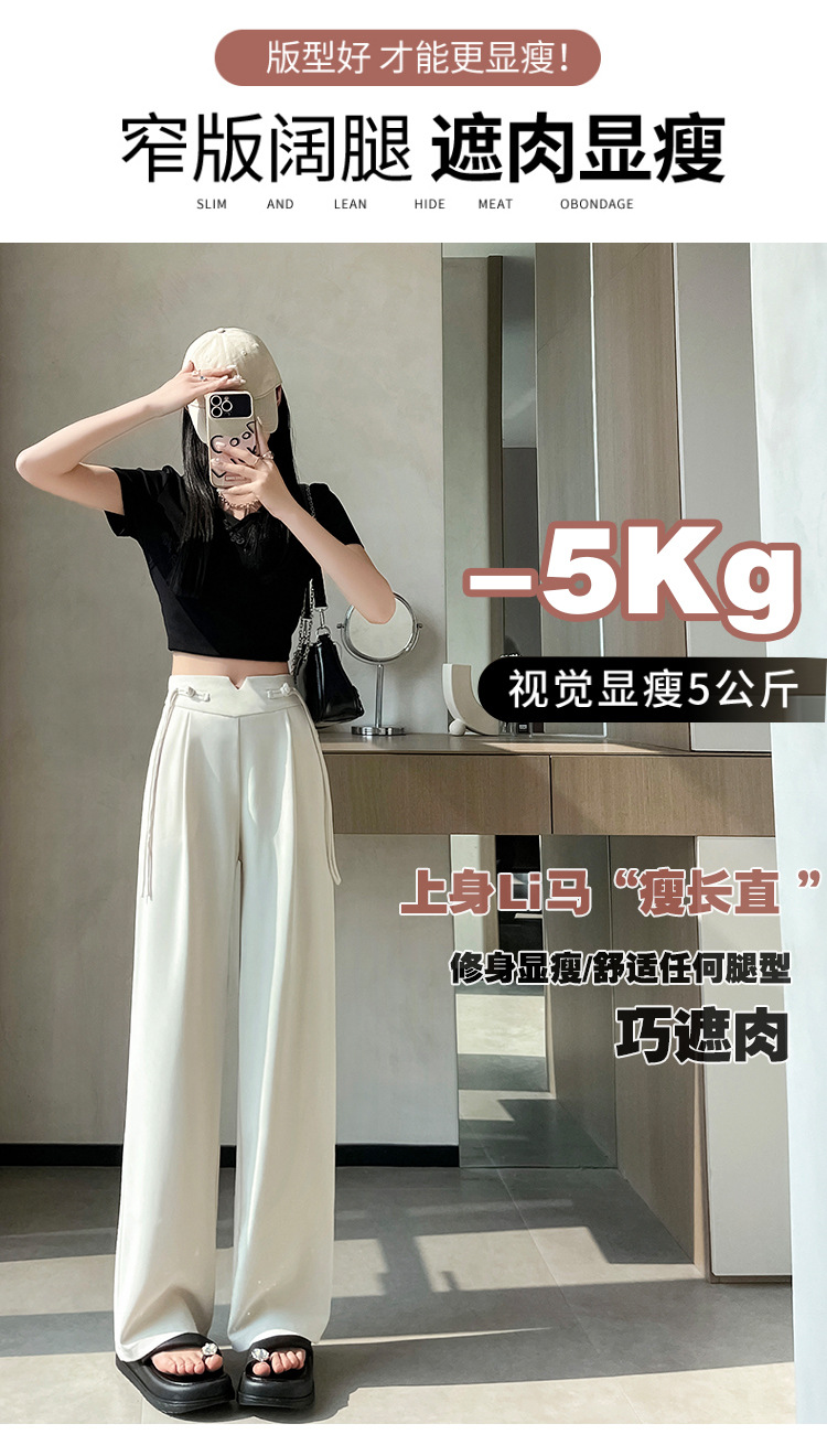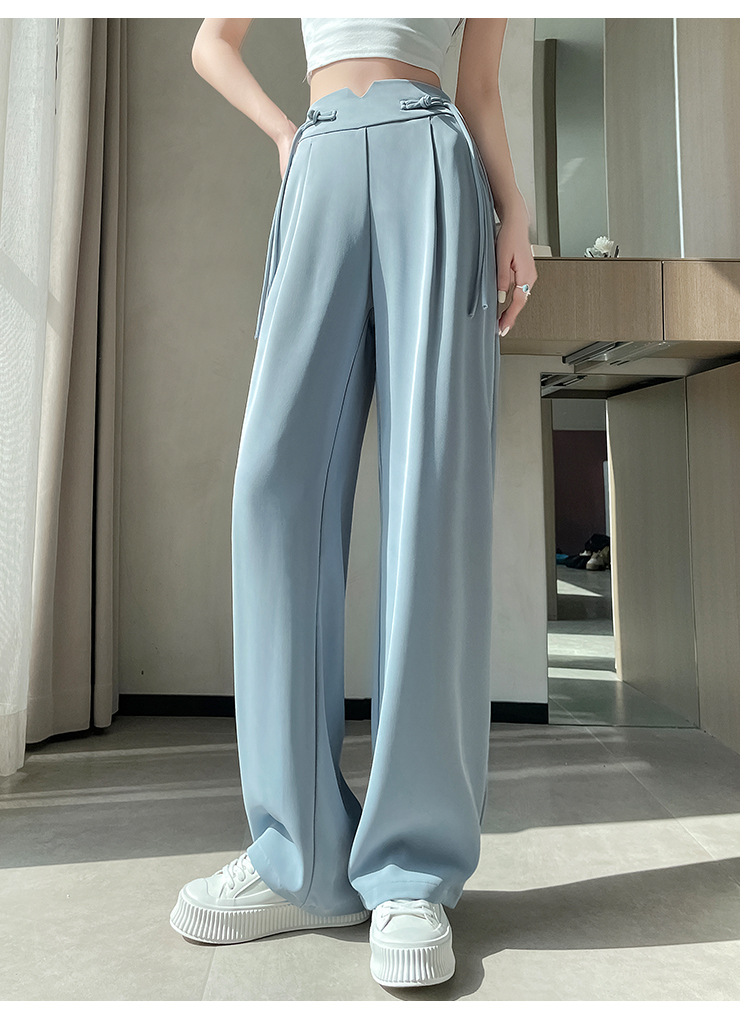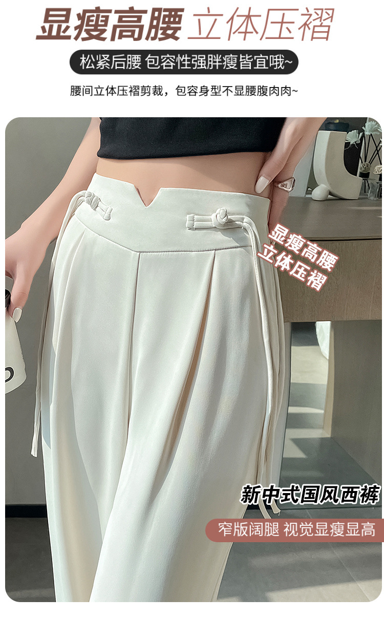 아이스 실크 와이드 레그 바지 여성용 여름 얇은 2025 새로운 국가 스타일 새로운 중국 스타일 바지 높은 허리 데프 쉬폰 바지스토어 가기