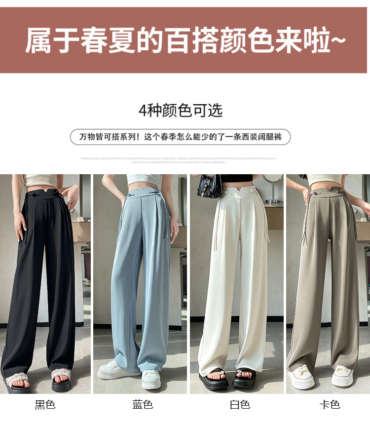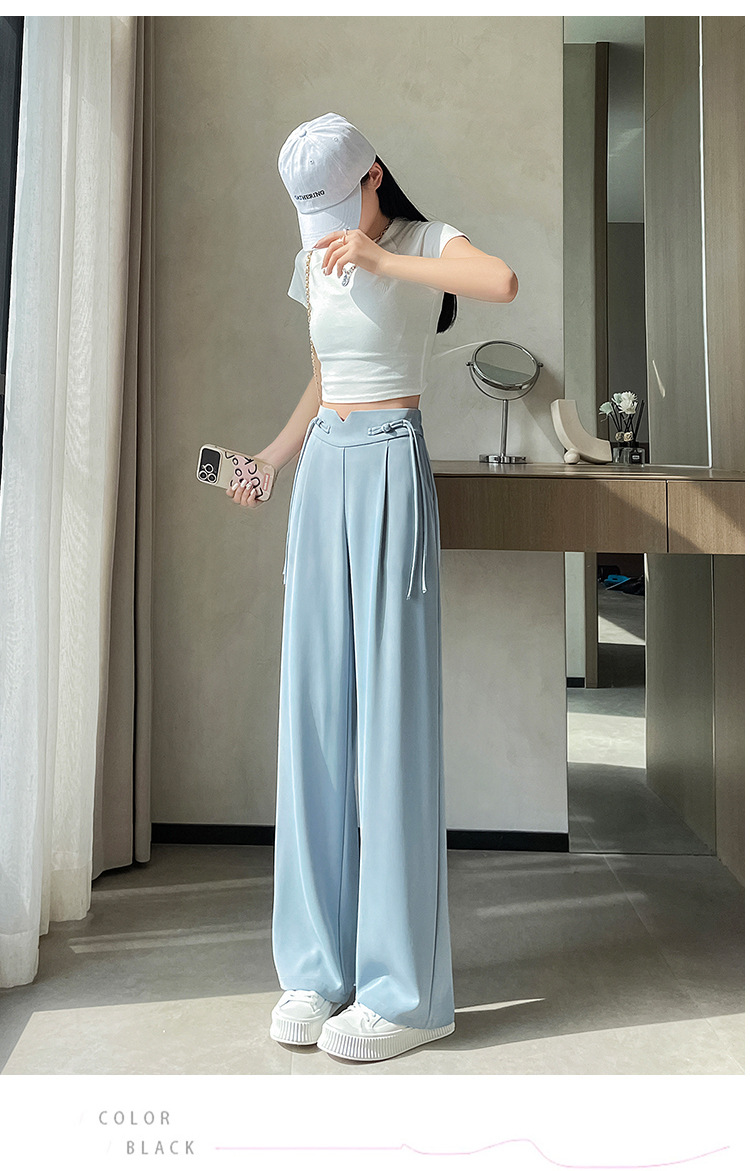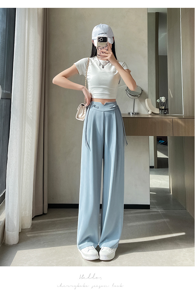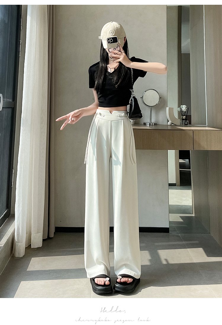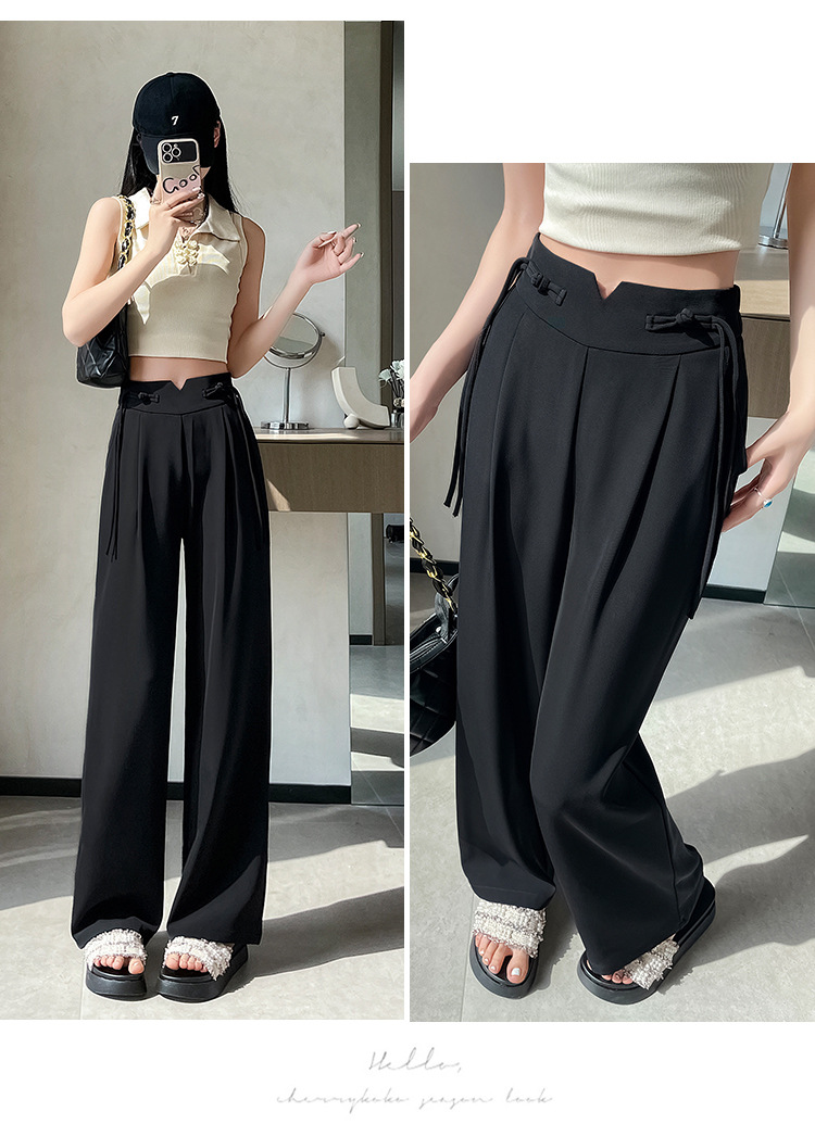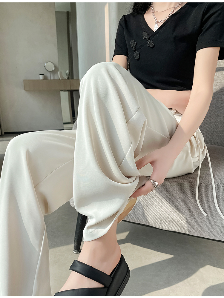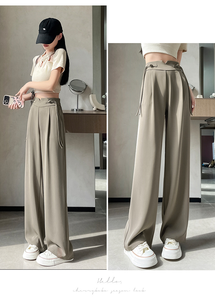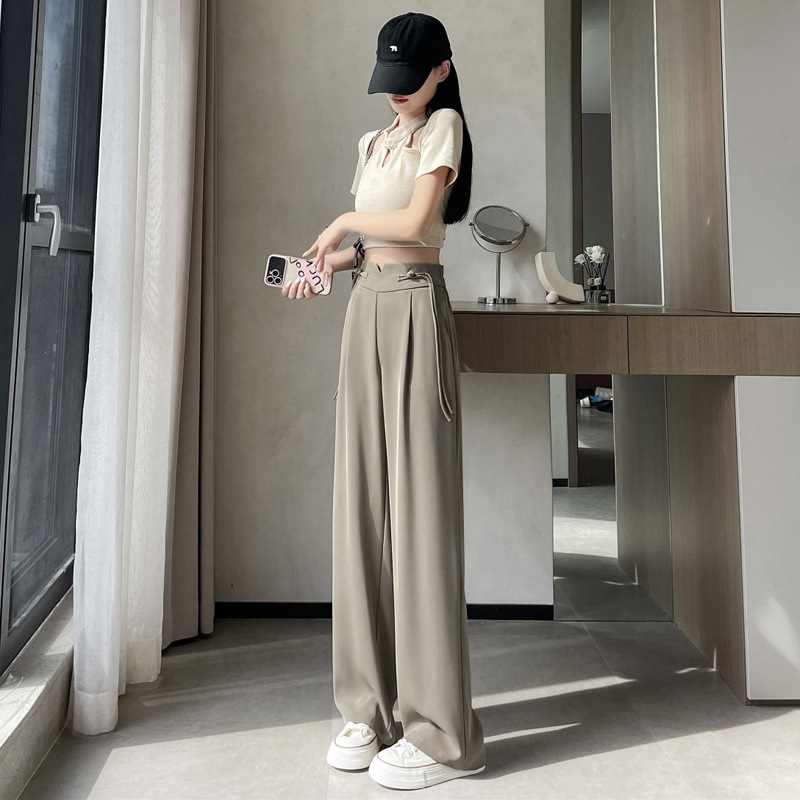 아이스 실크 와이드 레그 바지 여성용 여름 얇은 2025 새로운 국가 스타일 새로운 중국 스타일 바지 높은 허리 데프 쉬폰 바지스토어 가기