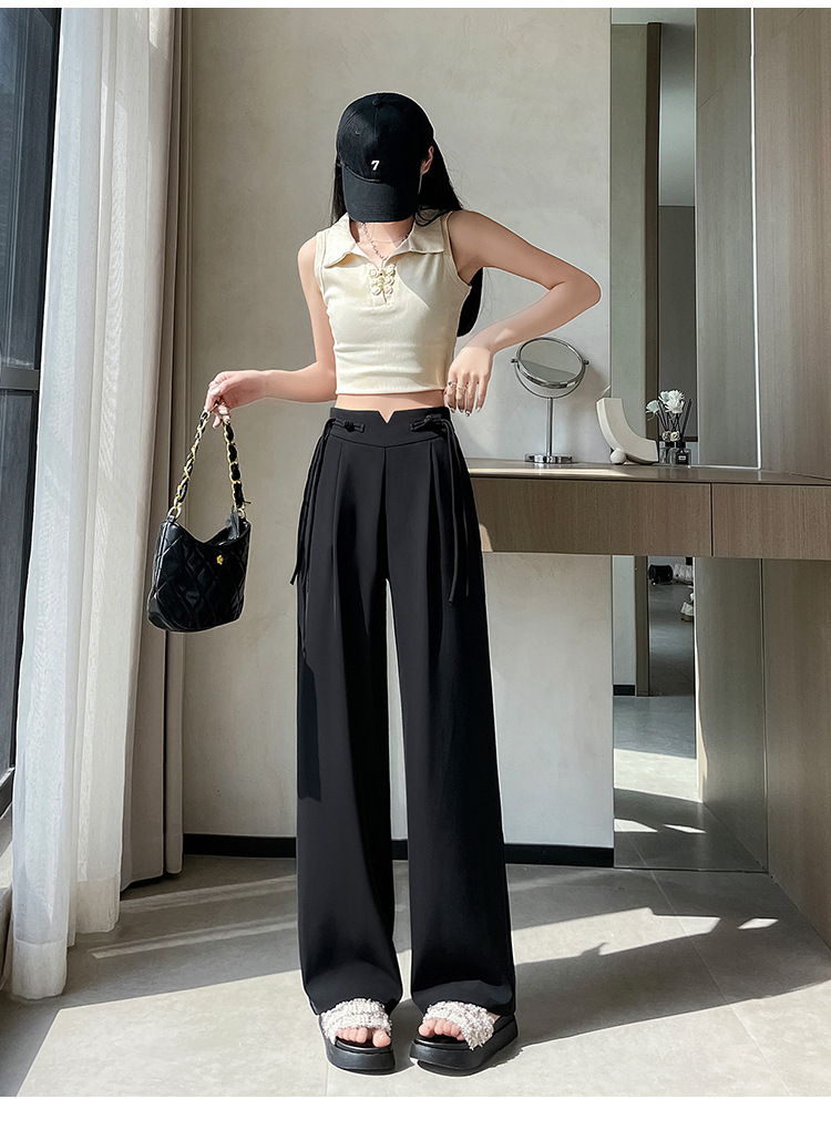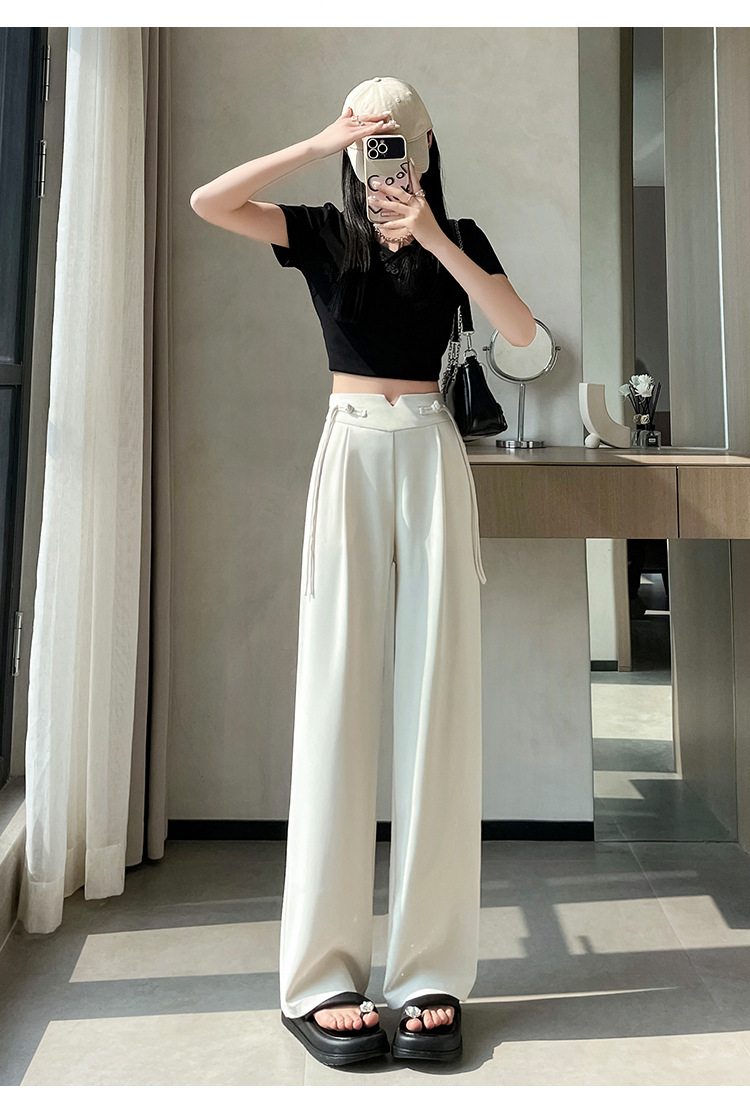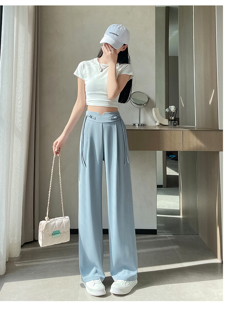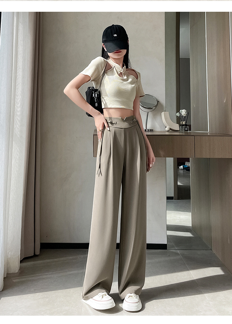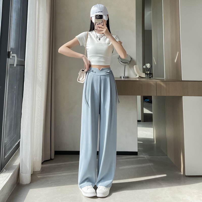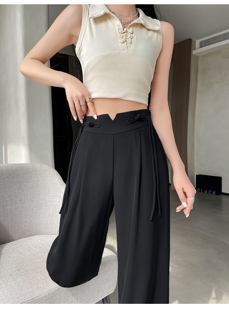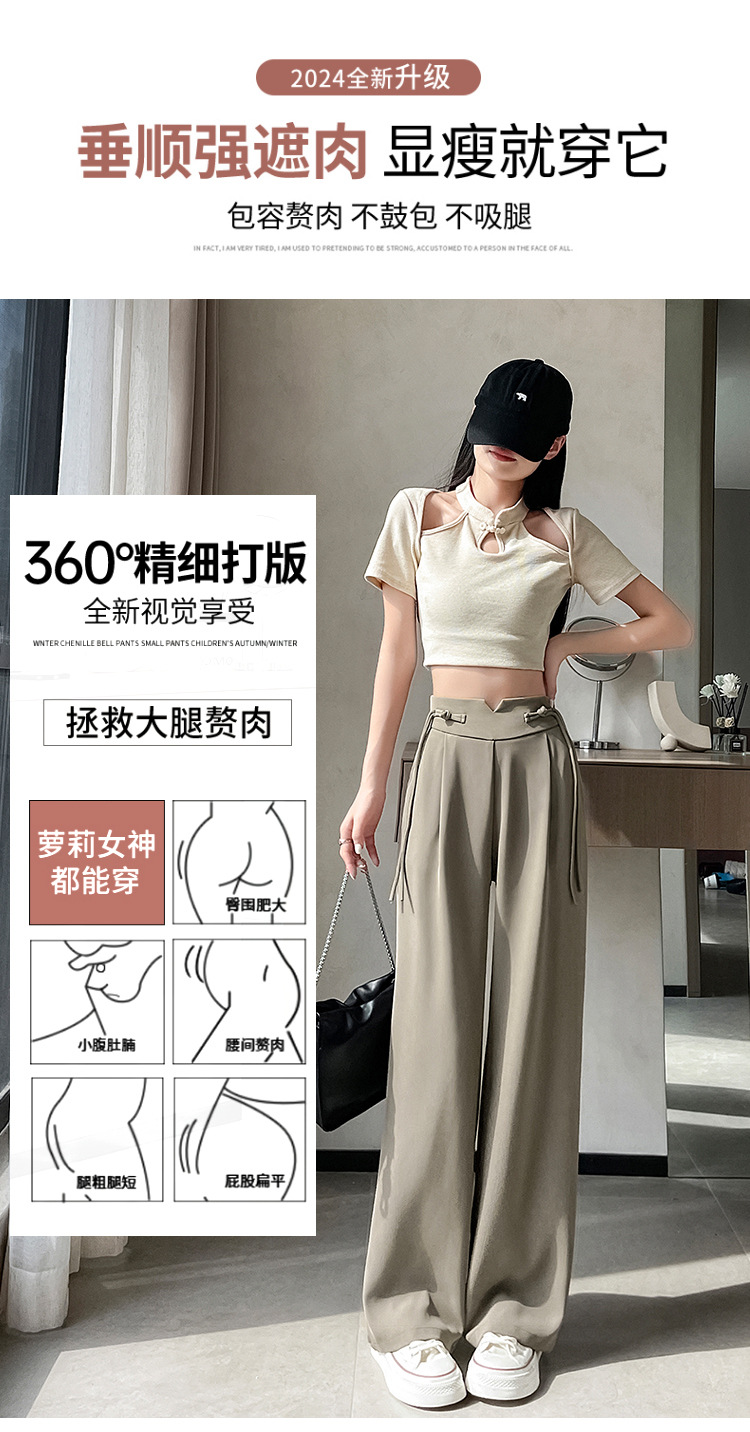 아이스 실크 와이드 레그 바지 여성용 여름 얇은 2025 새로운 국가 스타일 새로운 중국 스타일 바지 높은 허리 데프 쉬폰 바지스토어 가기