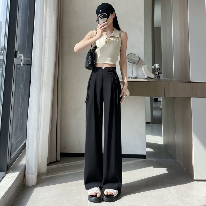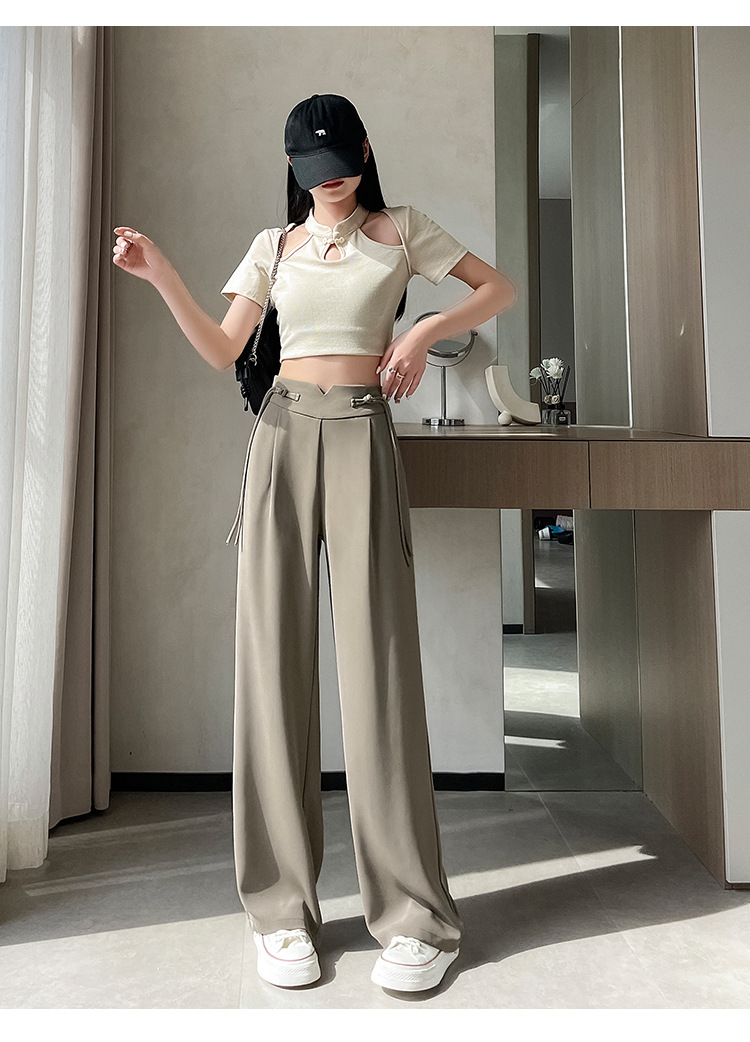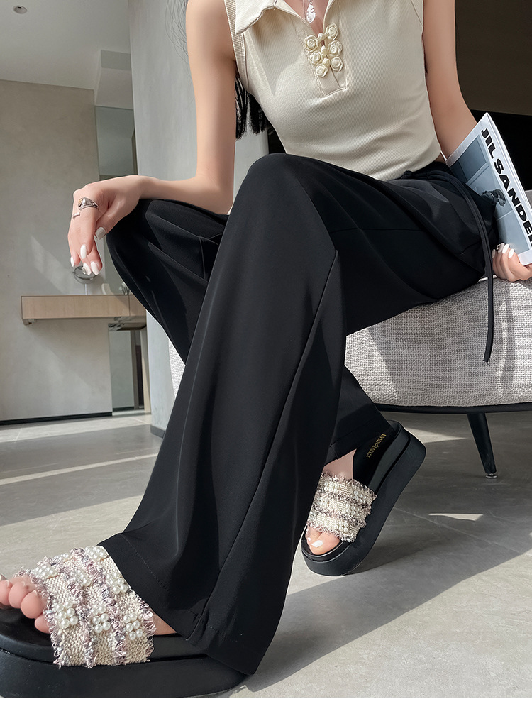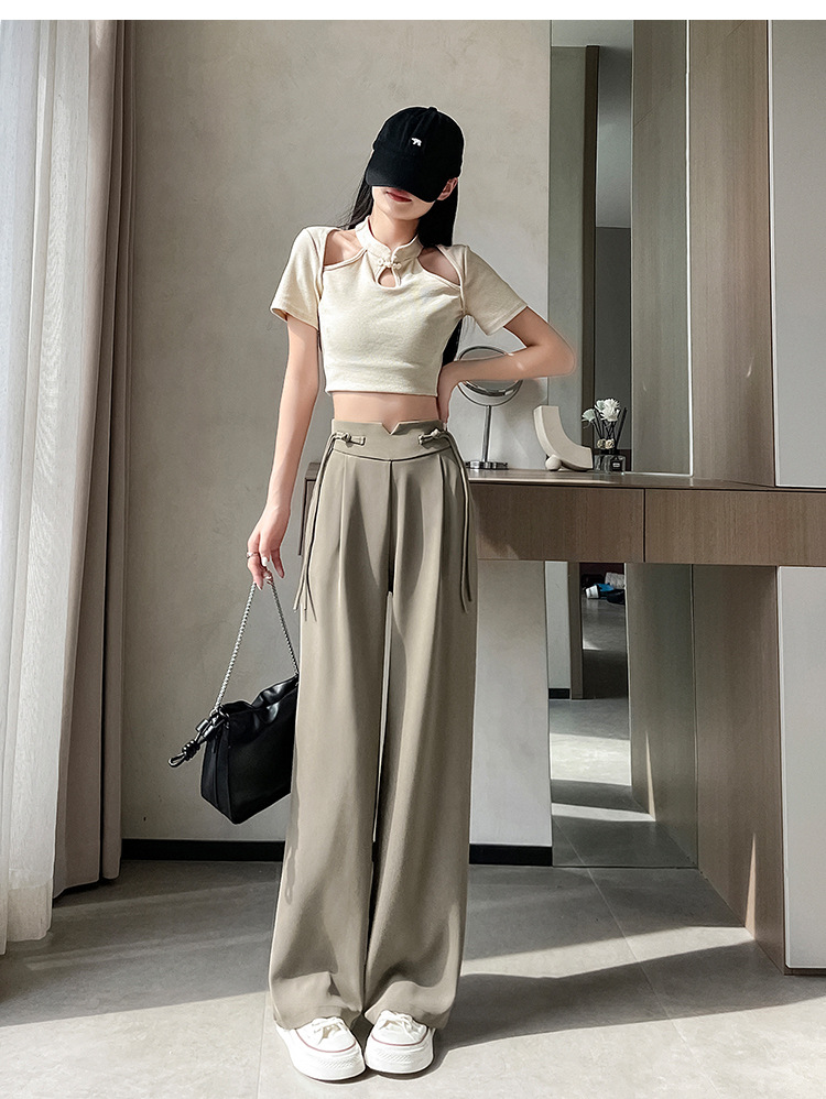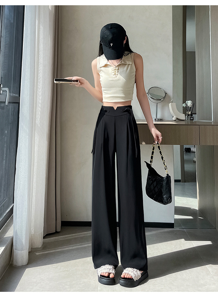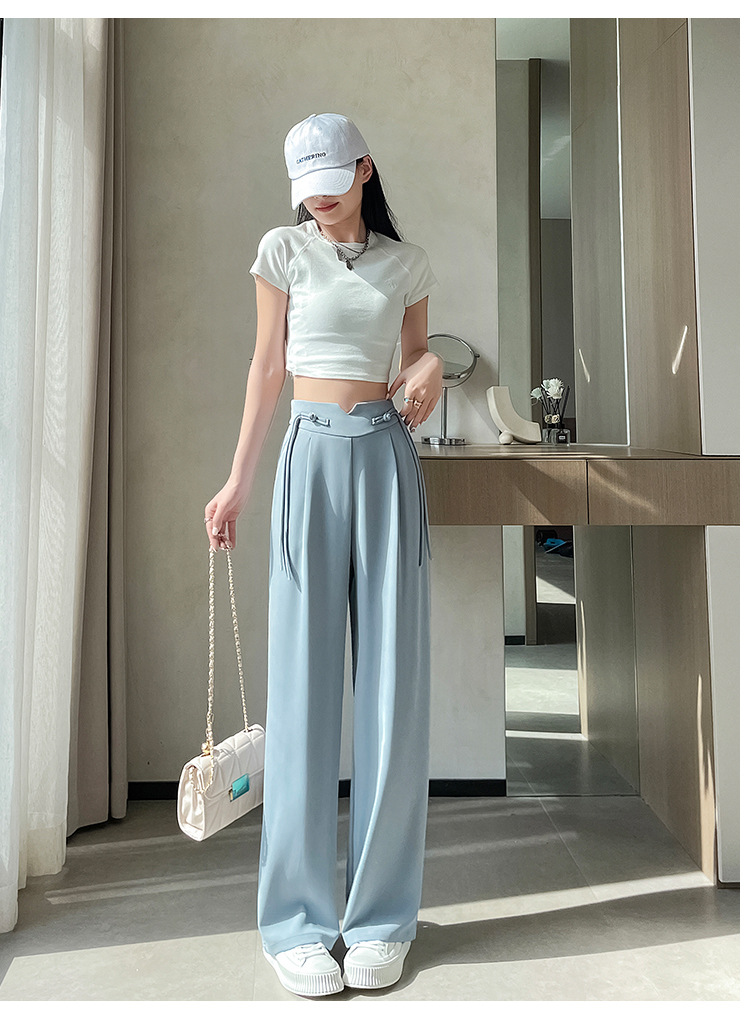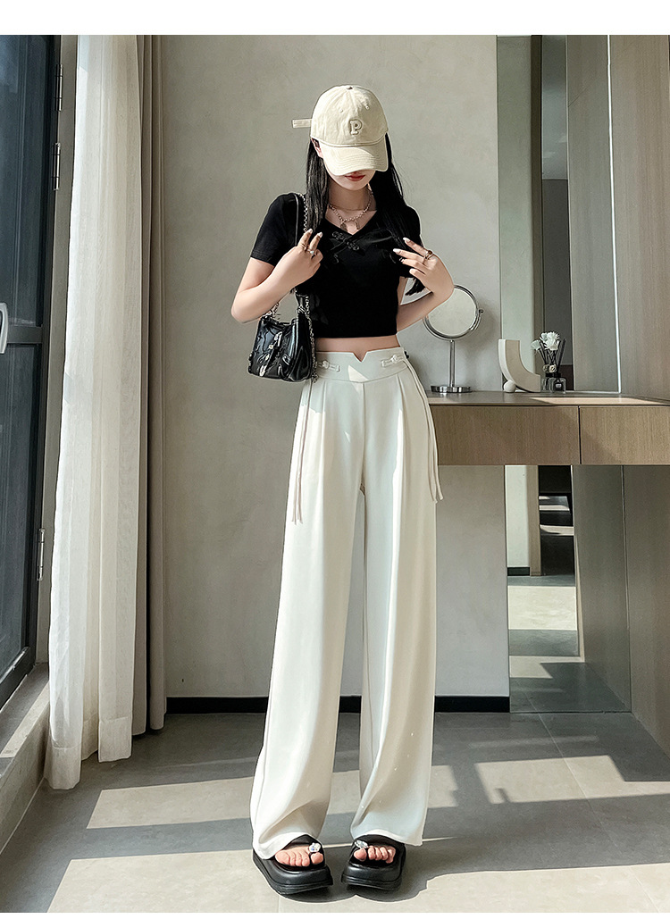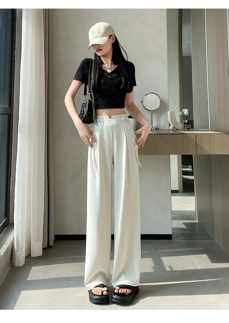아이스 실크 와이드 레그 바지 여성용 여름 얇은 2025 새로운 국가 스타일 새로운 중국 스타일 바지 높은 허리 데프 쉬폰 바지스토어 가기
