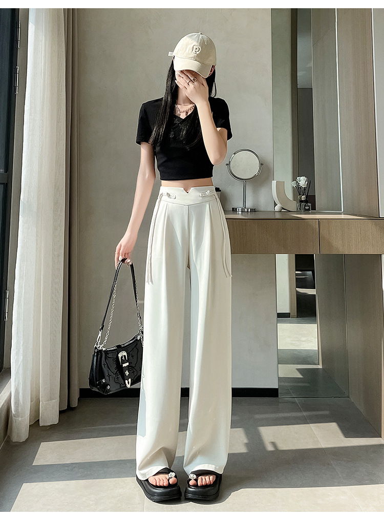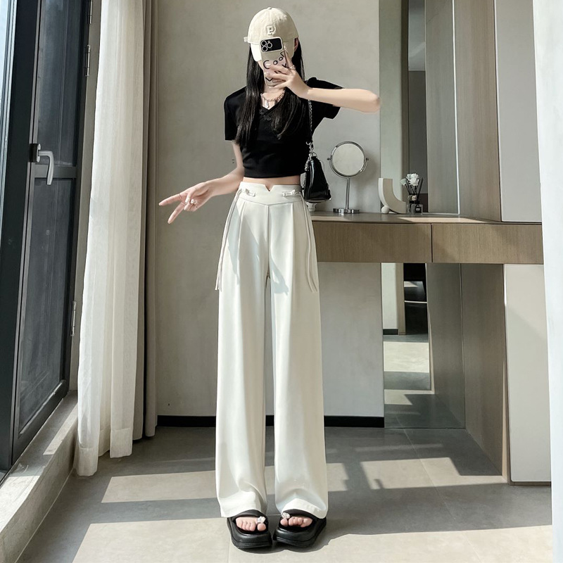 아이스 실크 와이드 레그 바지 여성용 여름 얇은 2025 새로운 국가 스타일 새로운 중국 스타일 바지 높은 허리 데프 쉬폰 바지
