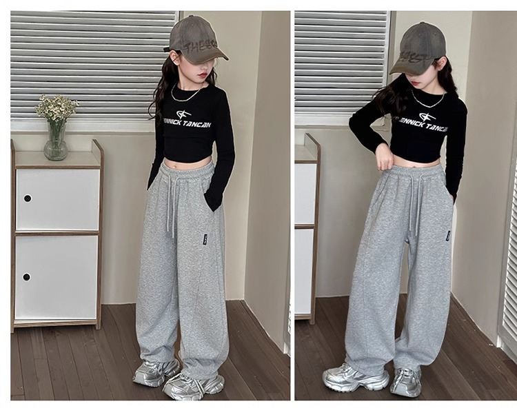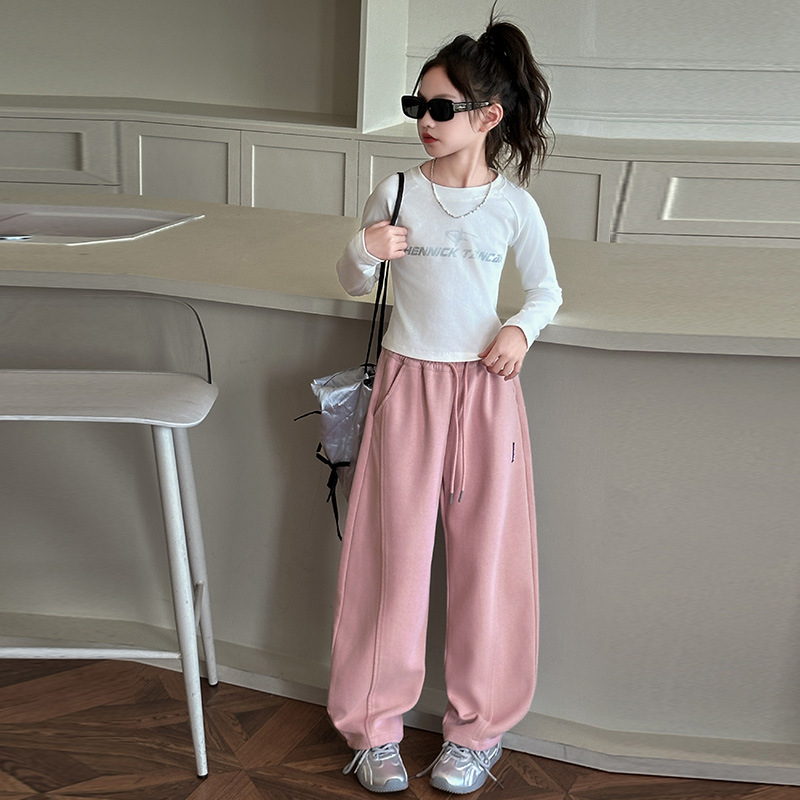 대외 무역 아동복 소녀 중 큰 어린이 캐주얼 바지 2025 년 봄과 가을 새로운 바나나 바지 스트레이트 다리 긴 바지 넓은 다리 바지스토어 가기
