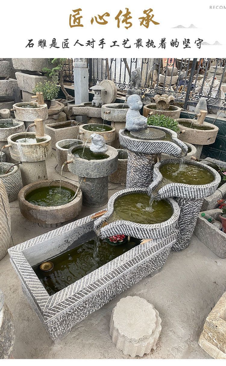 JSM 오래된 돌 물마루 물고기 탱크 돼지 물마루 구어 소 물마루 돌 공장 발코니 흐르는 물 풍경 야외 안뜰 집 흐르는 물 진자