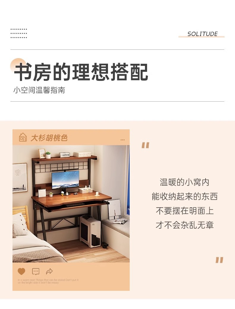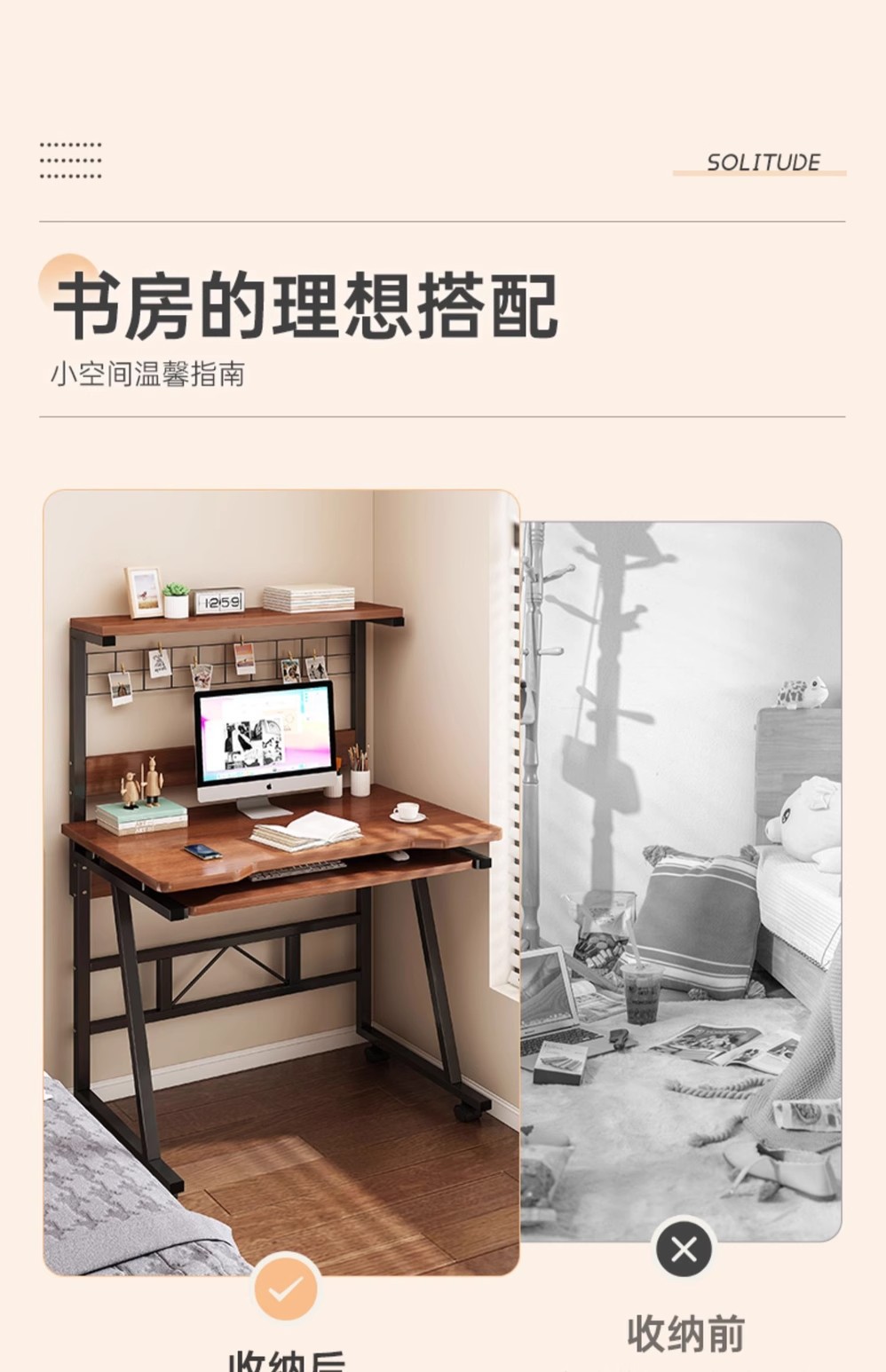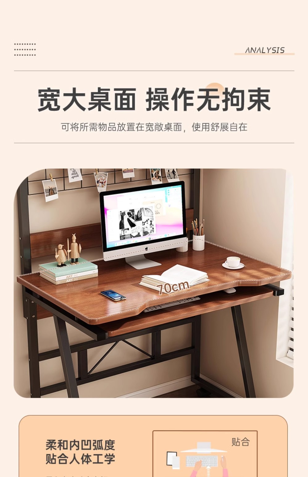 小户型书桌书架一体电脑桌家用轻奢办公桌工作台卧室学生写字桌子