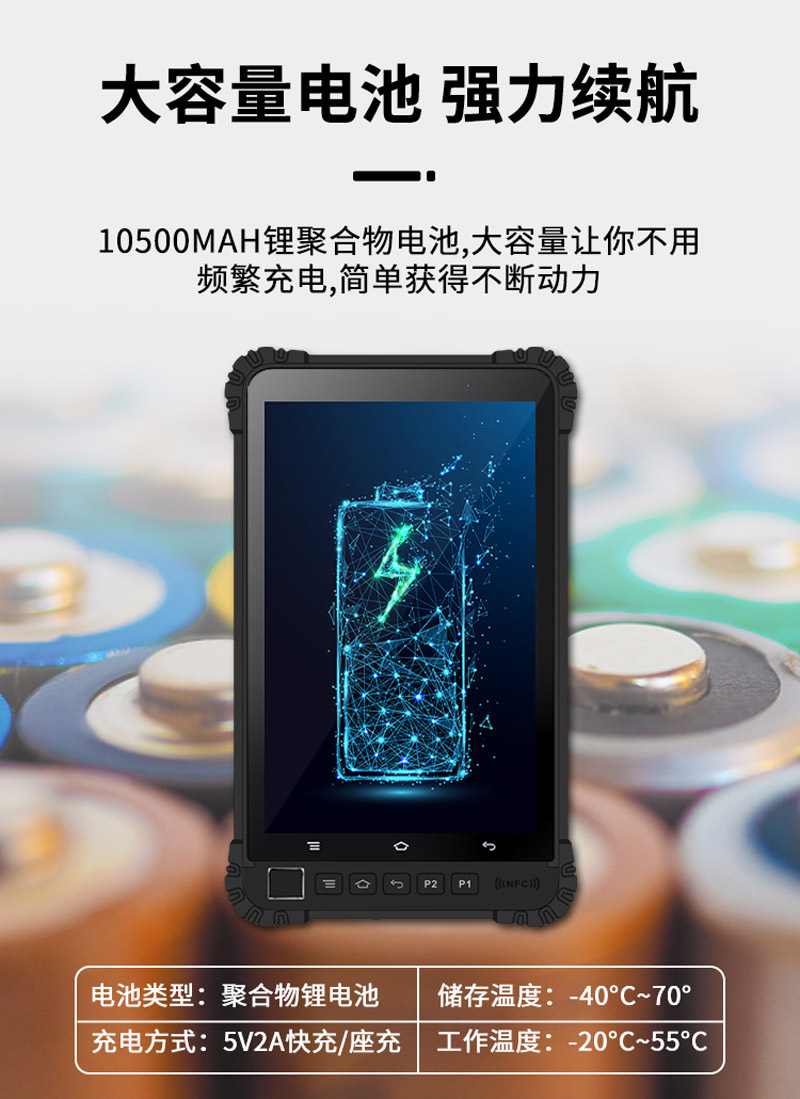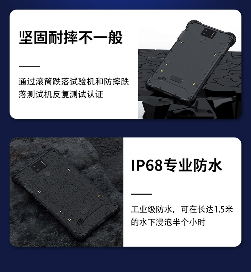 2、IP67防水防尘等级 ,防摔等级符合MIL-STD-810G标准,可以满足大多行业苛刻的使用环境,做到防水、防尘、防摔。坚固耐用,质量稳定。