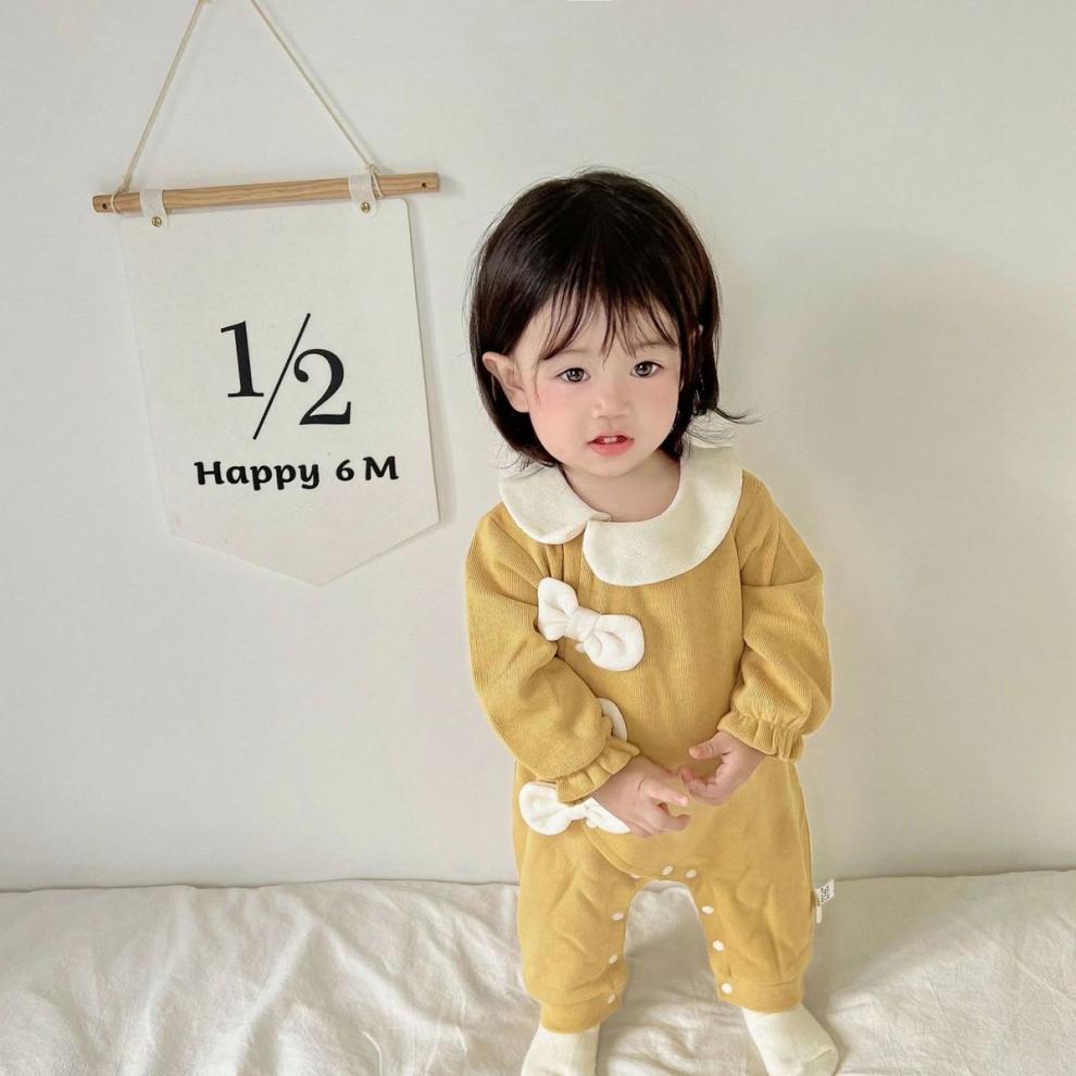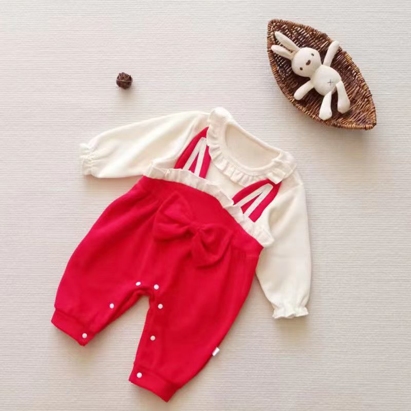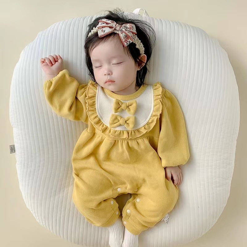 슈퍼 귀여운 아기 봄 점프 수트 순수한 면화 귀여운 공주 하이이 아기 소녀 100 일 보름달 세트 신생아스토어 가기