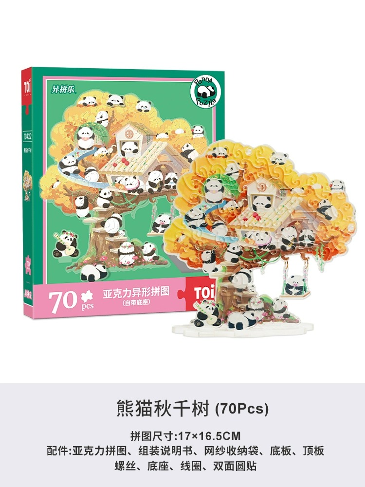새로운 폭발 Toi 아크릴 특수 모양의 퍼즐 70 조각 팬더 스윙 트리 스테레오 DIY 장식품 여성을위한 장난감 선물스토어 가기