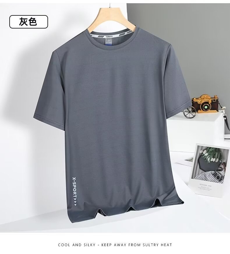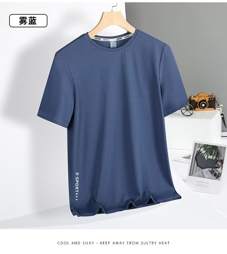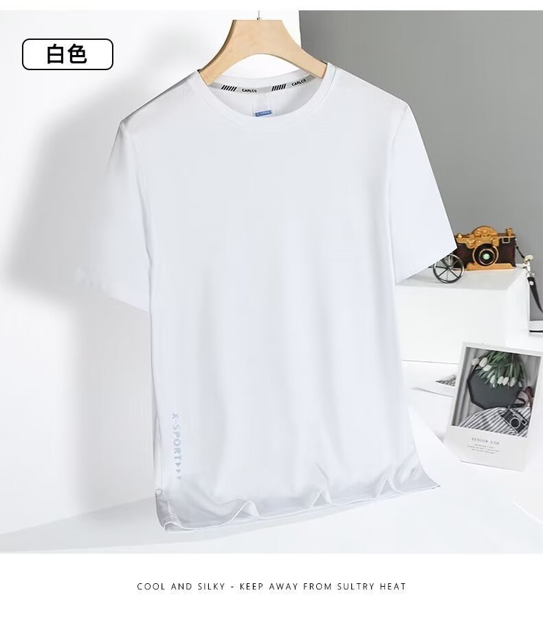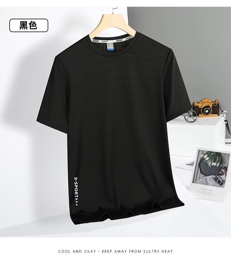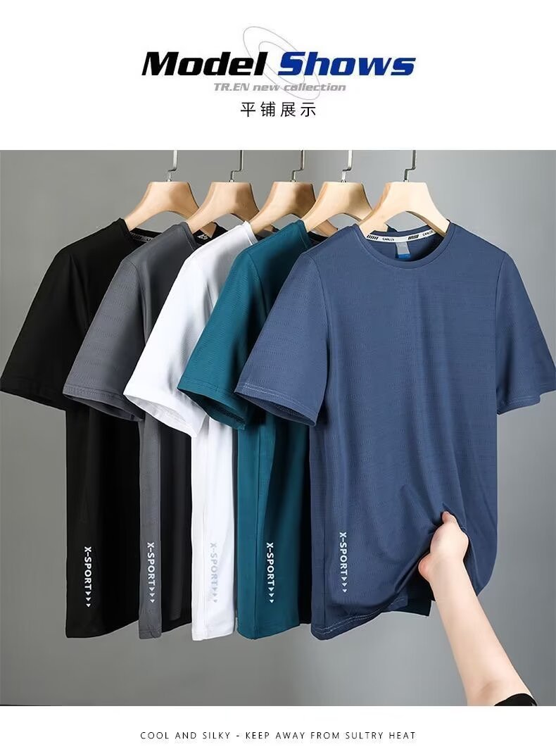 아이스 실크 반팔 티셔츠 남자 여름 스포츠 빠른 건조 피트니스 반팔 스포츠 달리기 티셔츠 남성 의류 국경 도매스토어 가기