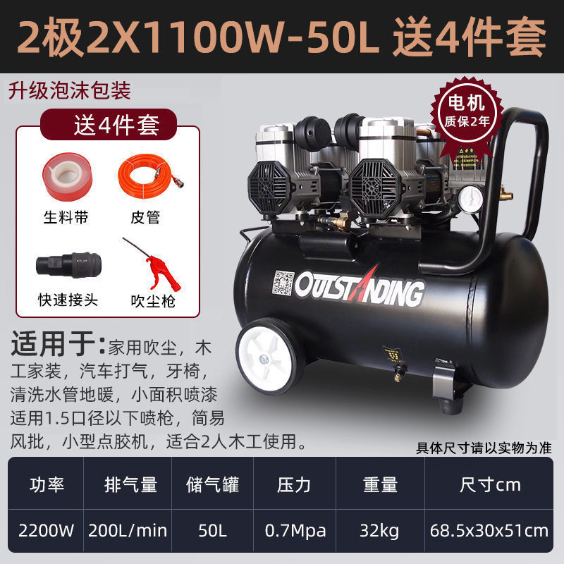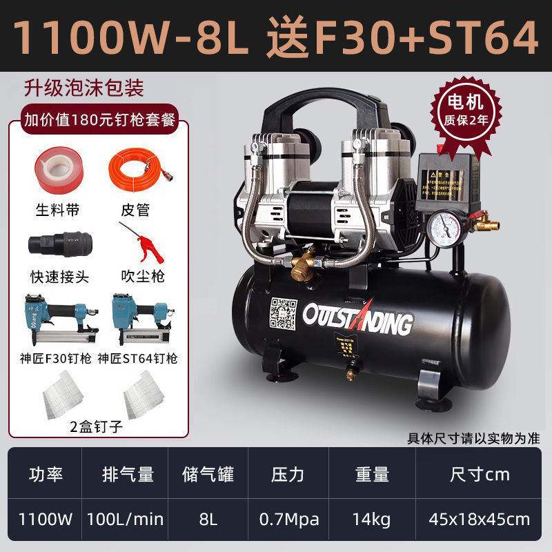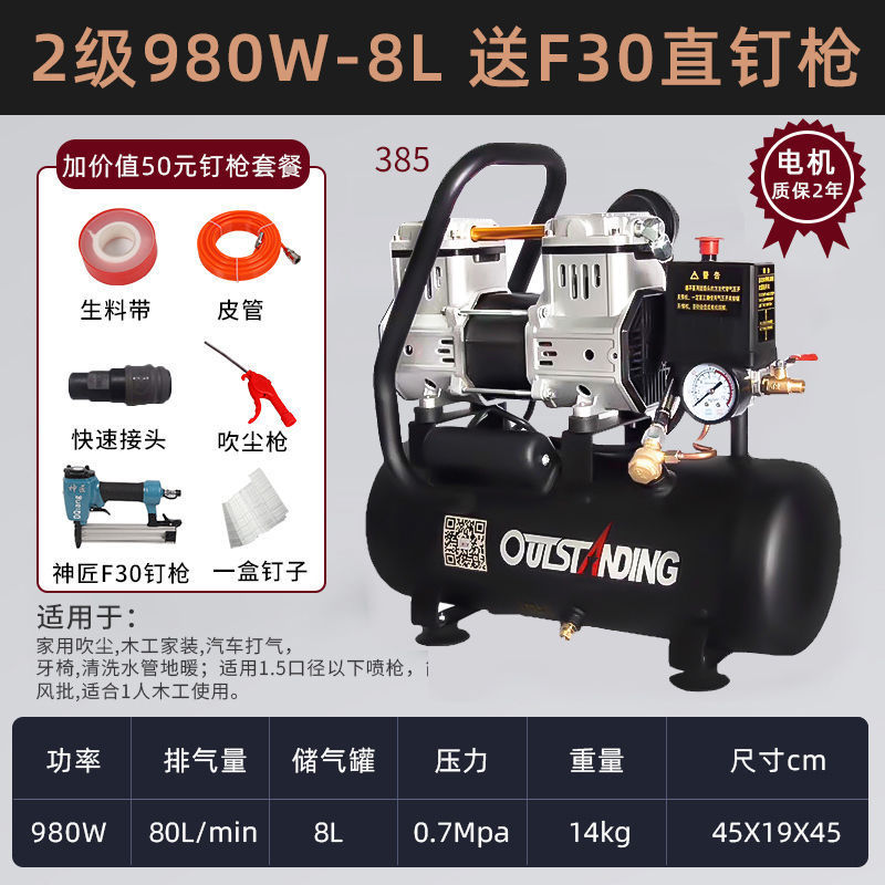 Otus 공기 압축기 작은 공기 펌프 목공 페인트 장식 고압 증기 220V 음소거 오일 프리 압축기스토어 가기
