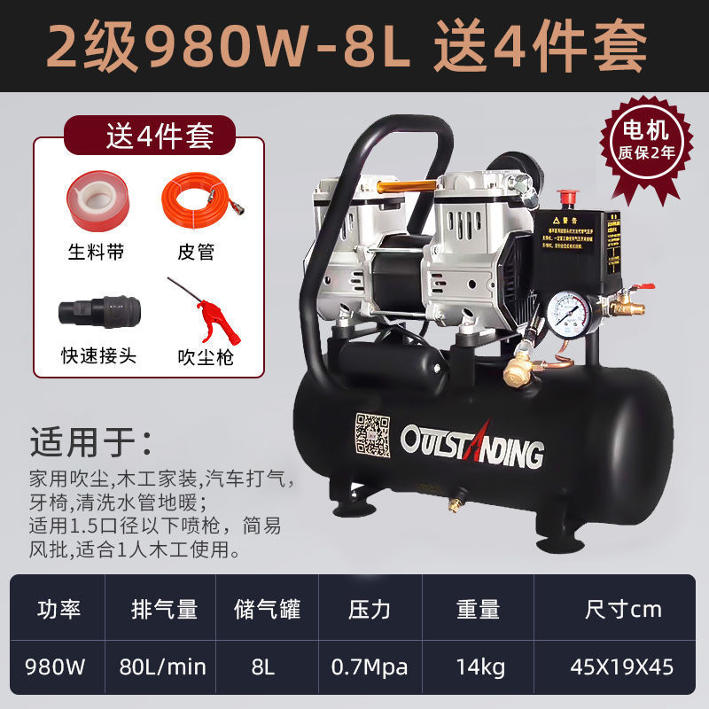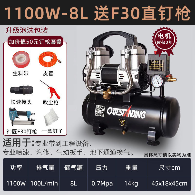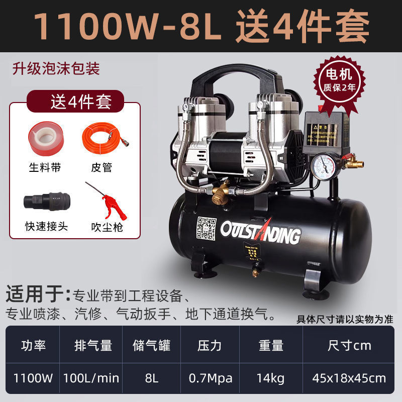 Otus 공기 압축기 작은 공기 펌프 목공 페인트 장식 고압 증기 220V 음소거 오일 프리 압축기
