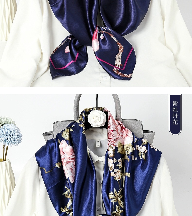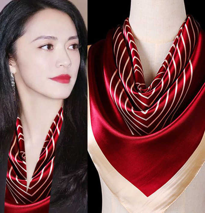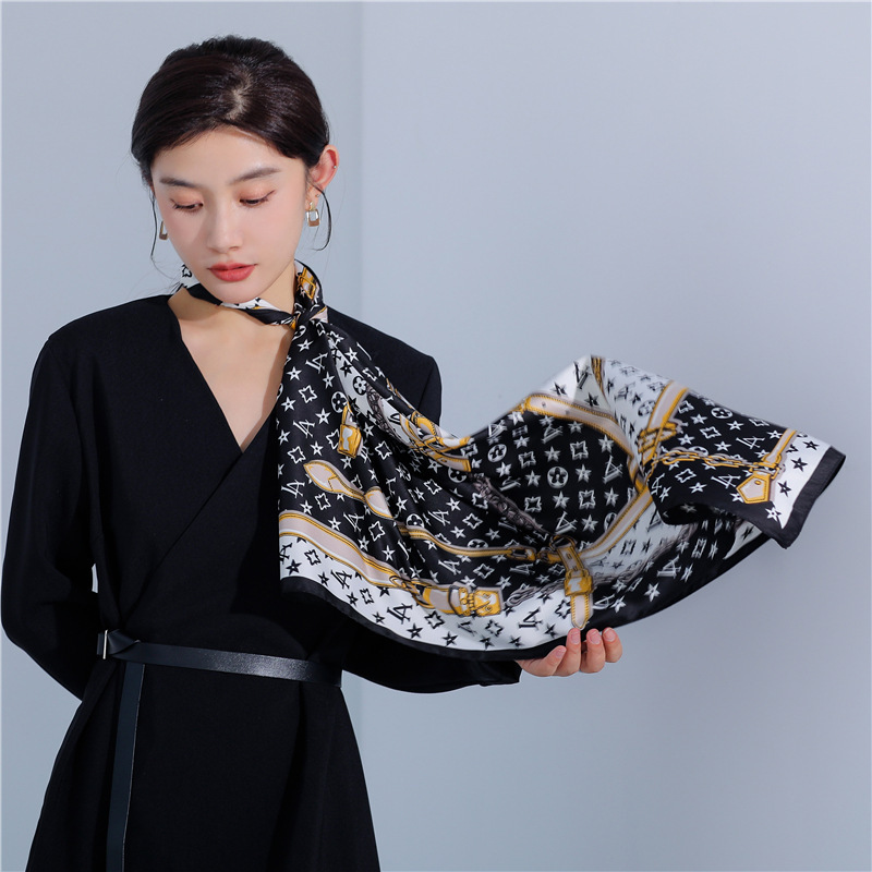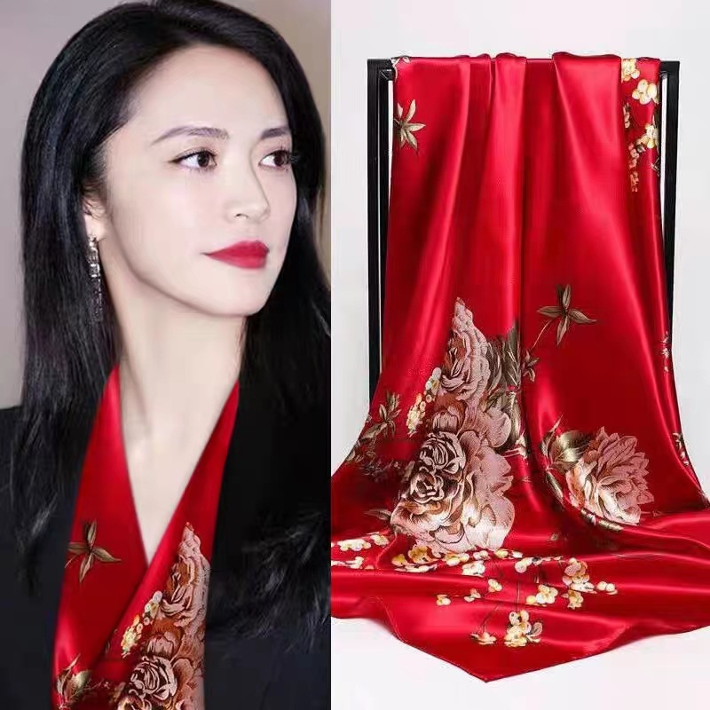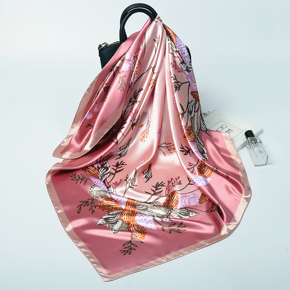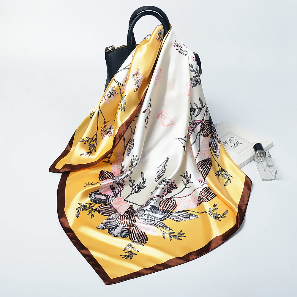 숙녀 90CM 큰 사각형 실크 새로운 모조 실크 스카프 인쇄 가을과 겨울 새틴 스카프 공장 선물 도매