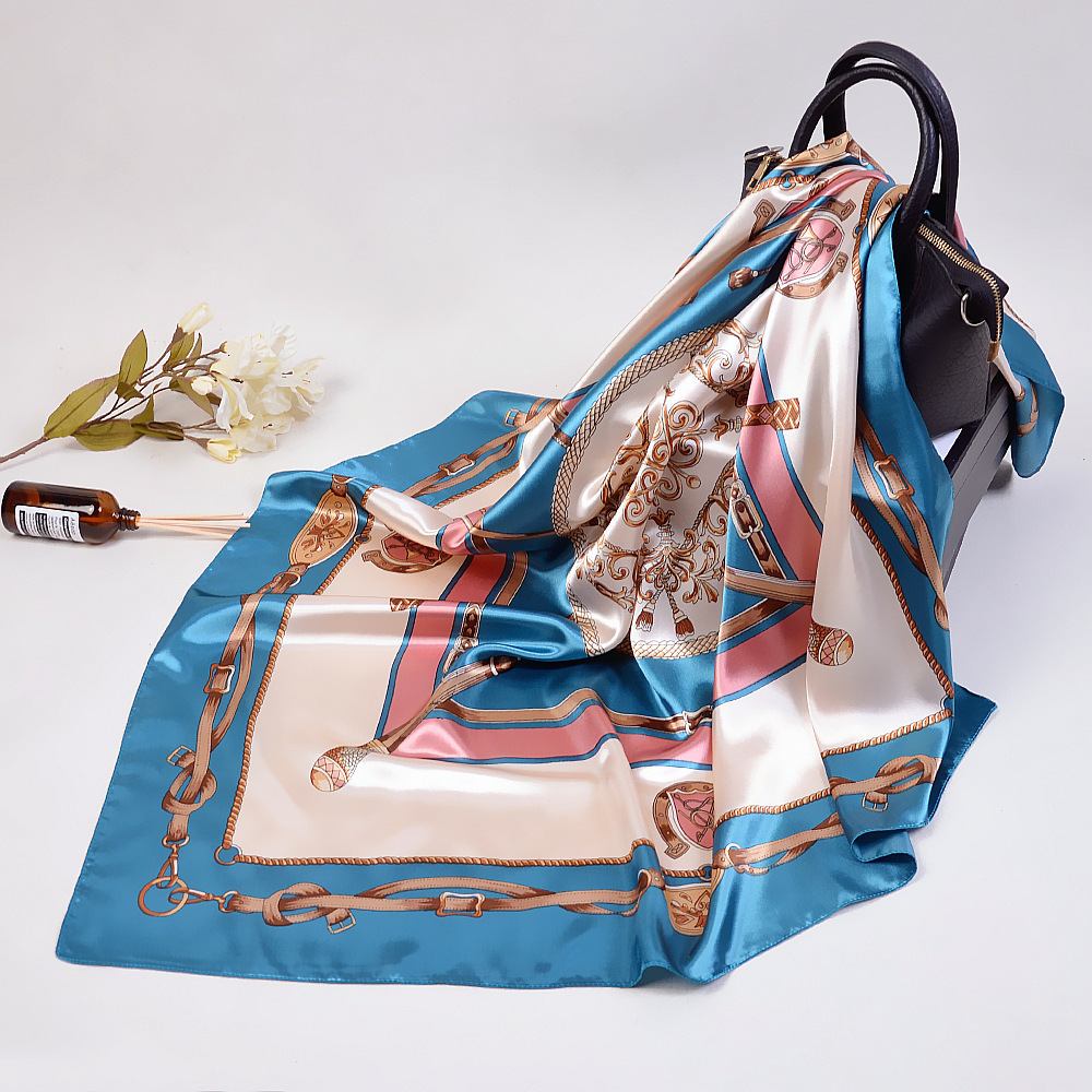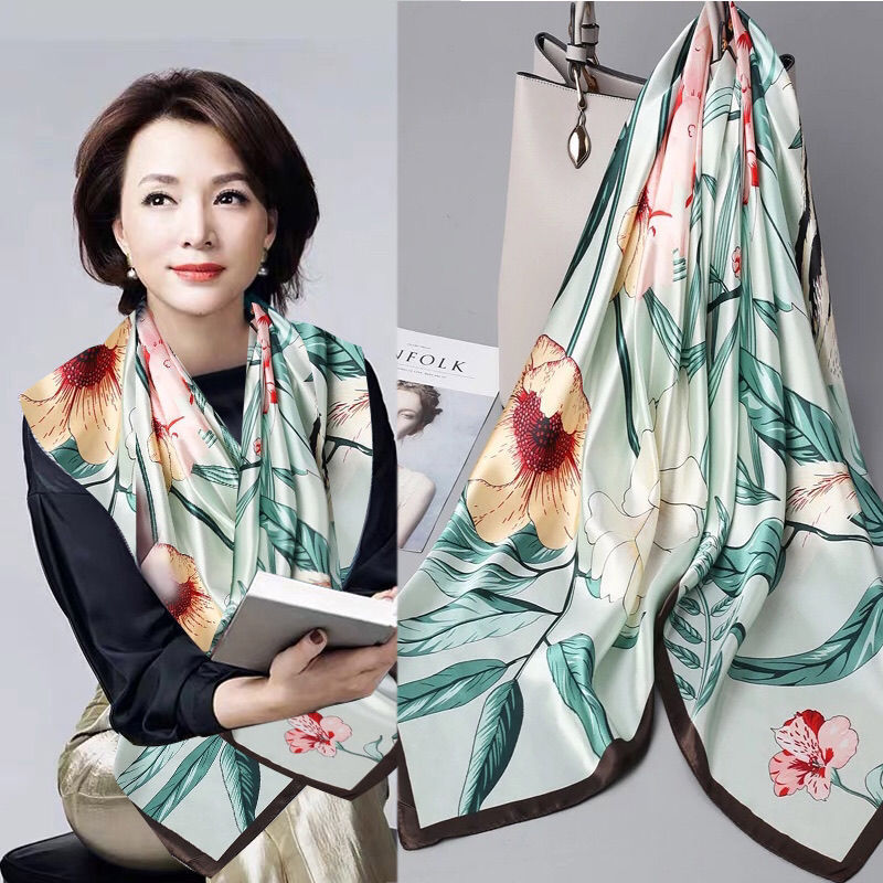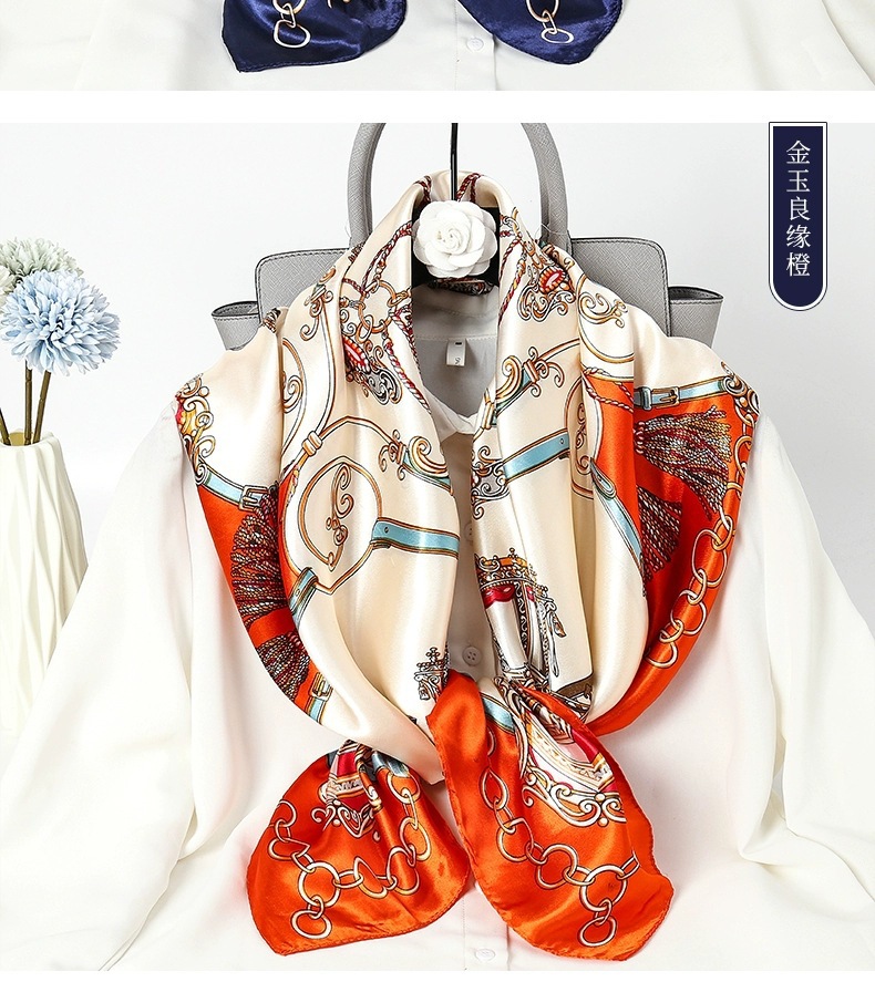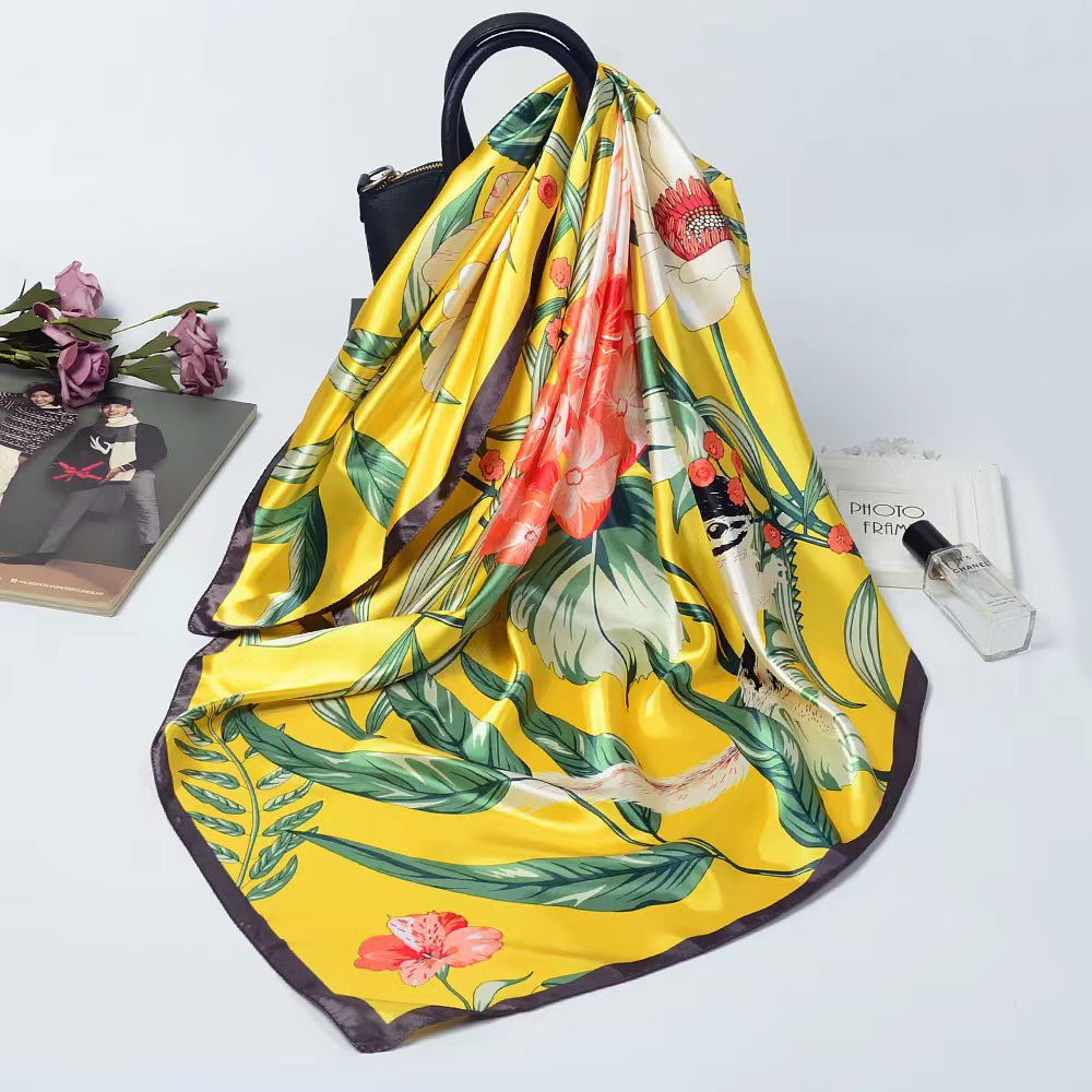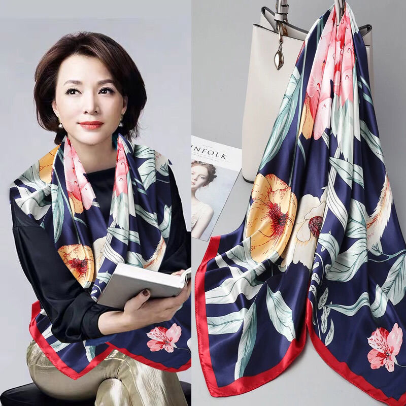 숙녀 90CM 큰 사각형 실크 새로운 모조 실크 스카프 인쇄 가을과 겨울 새틴 스카프 공장 선물 도매스토어 가기