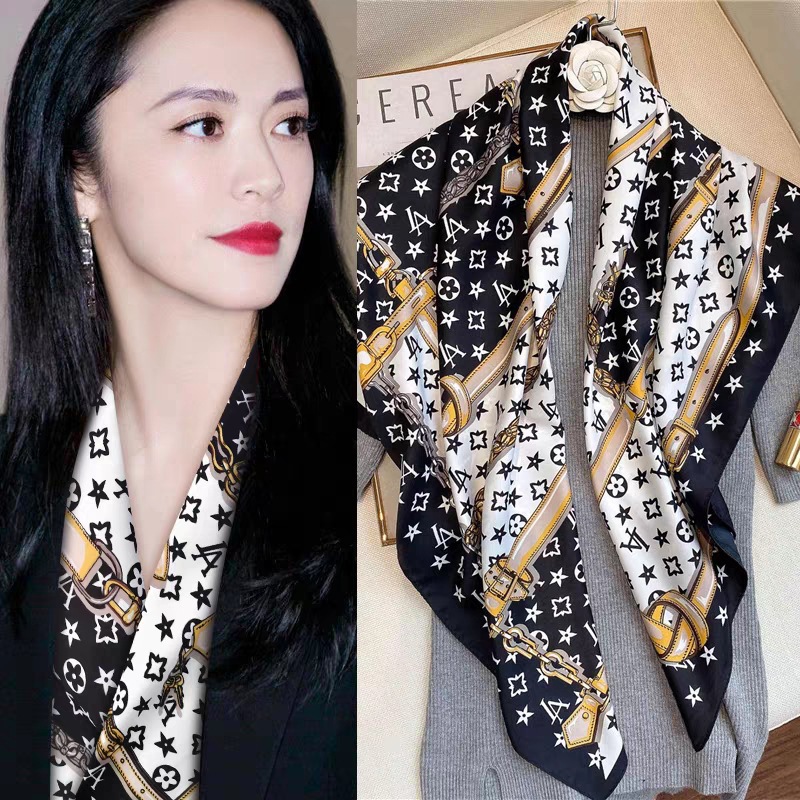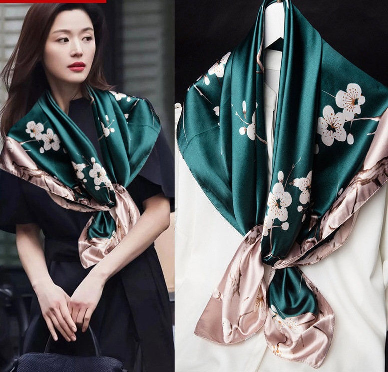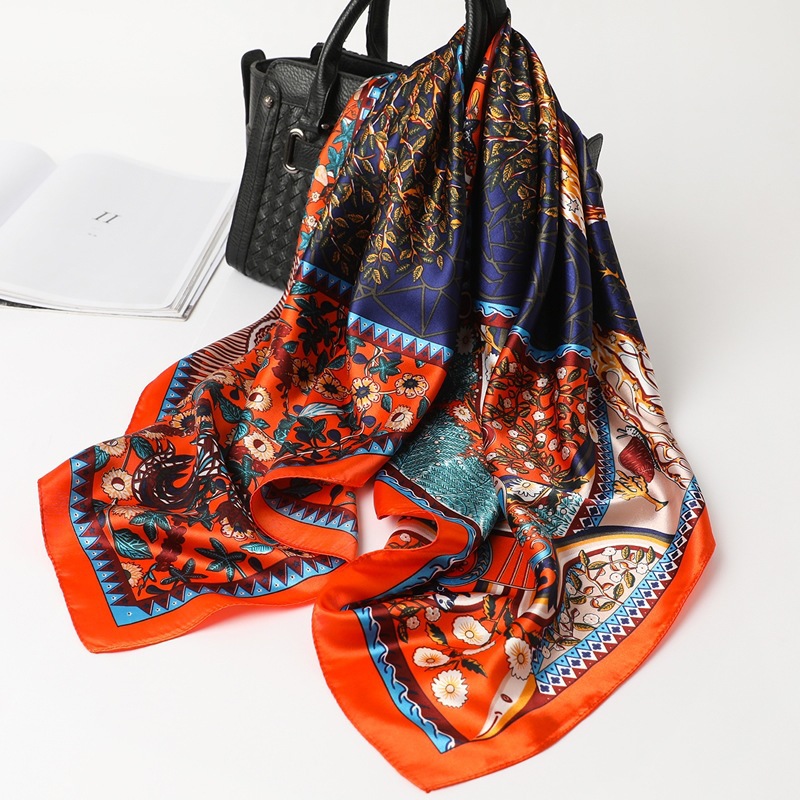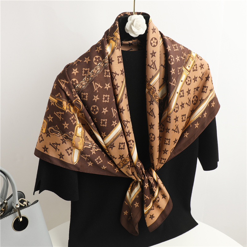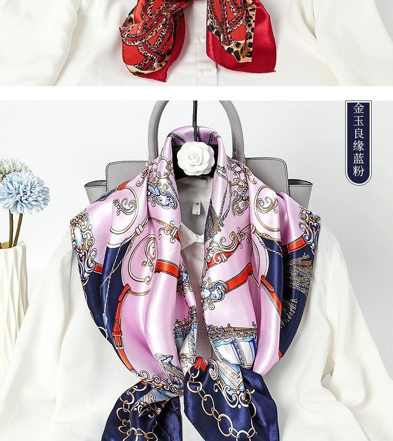 숙녀 90CM 큰 사각형 실크 새로운 모조 실크 스카프 인쇄 가을과 겨울 새틴 스카프 공장 선물 도매스토어 가기