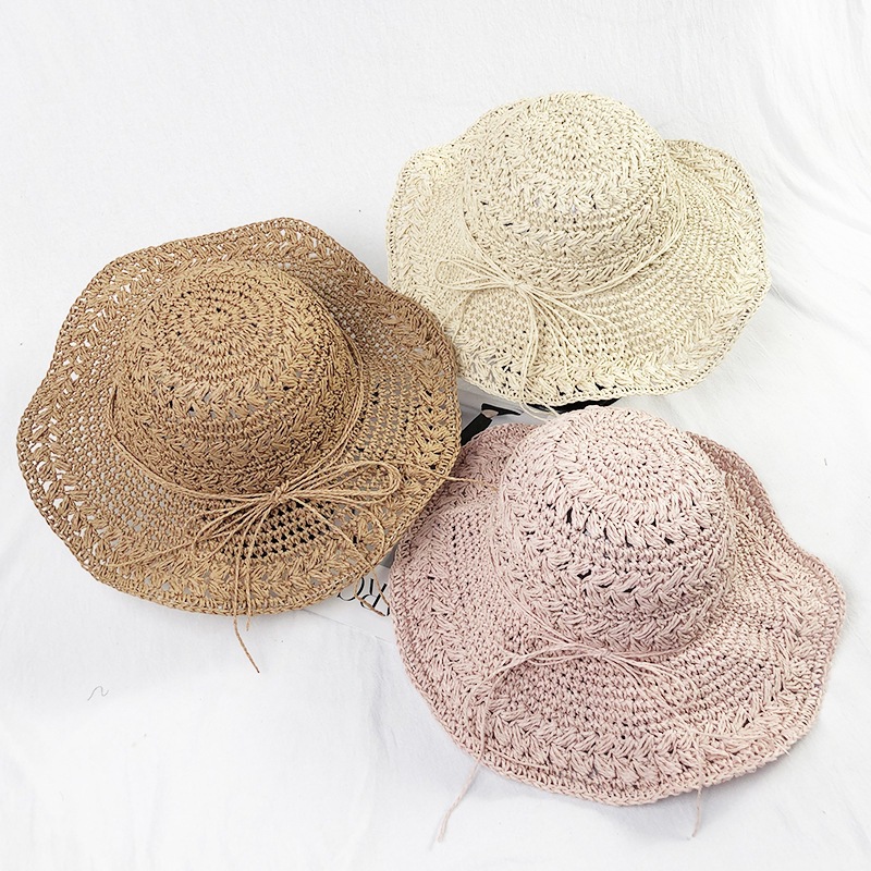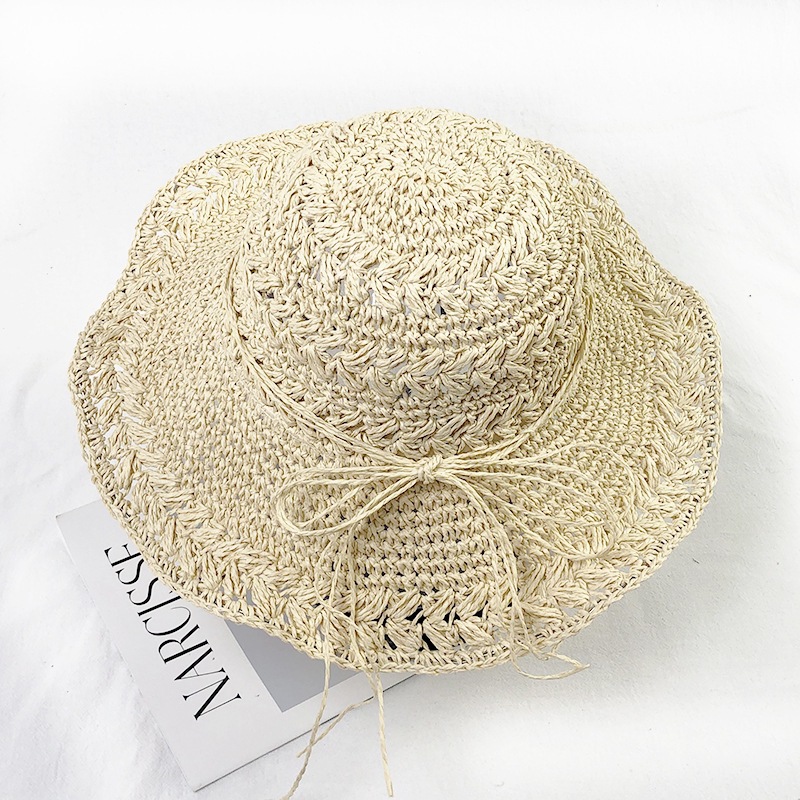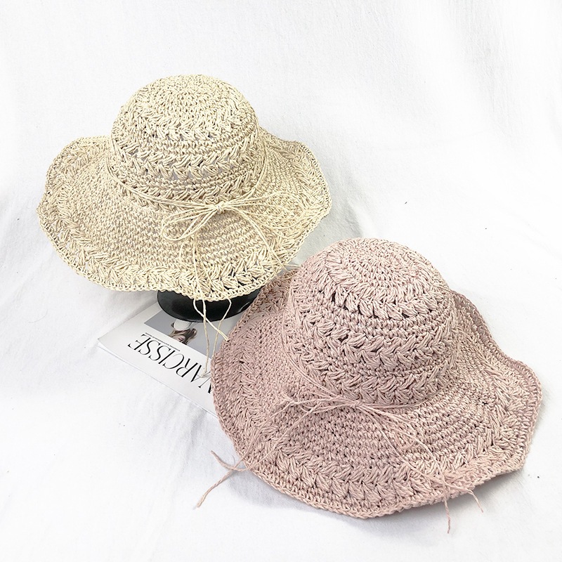모자 여성의 봄과 여름 새로운 고급 밀짚 모자 여름 접이식 태양 모자 해변 얼굴 작은 어부 모자