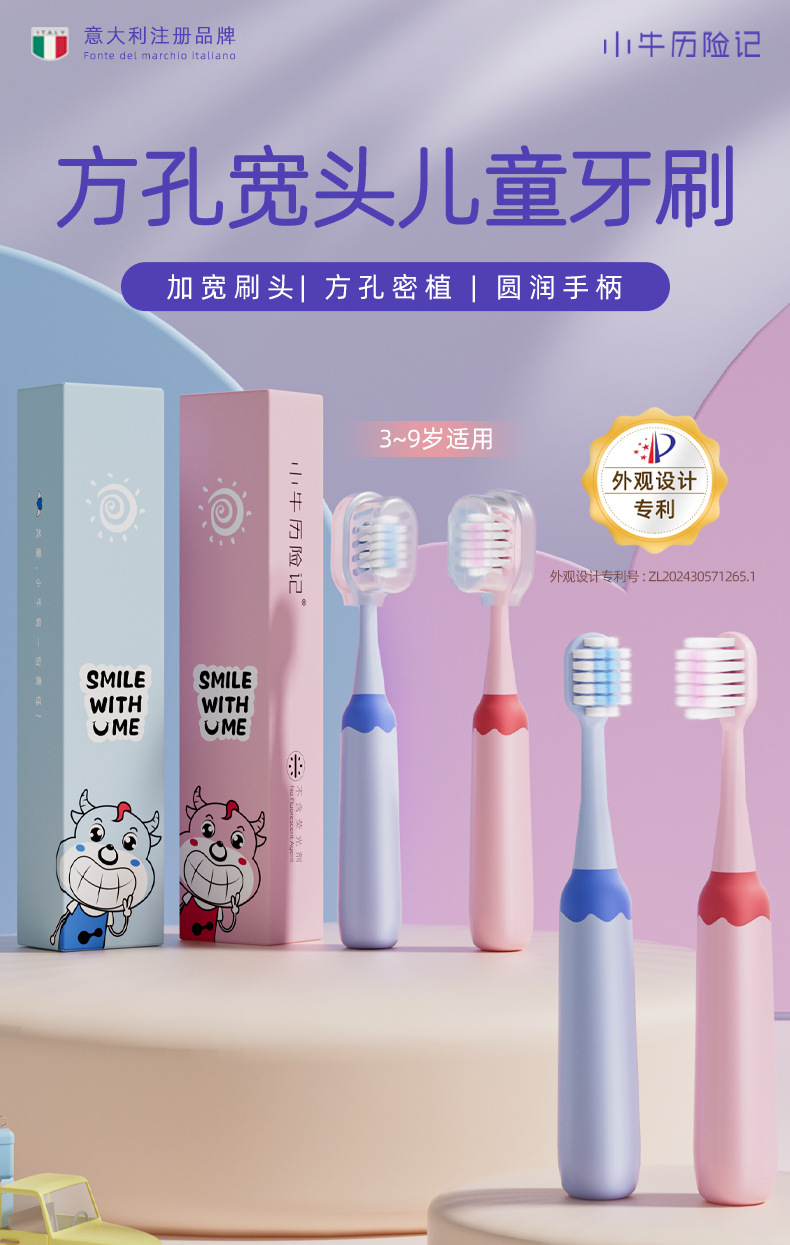 작은 소의 모험 어린이용 칫솔 부드러운 칫솔모 3-6-9세 사각 구멍 미세모 아기 개별 포장 도매
