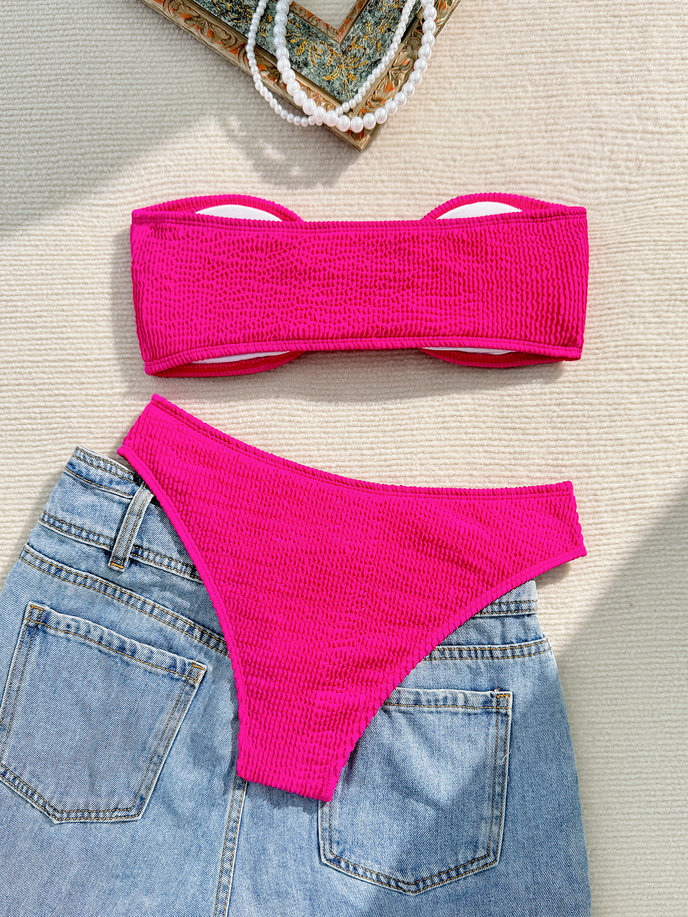 2025 솔리드 컬러 스트랩리스 섹시 휴가 비키니 유럽과 미국 새로운 INS 비치 사진 수영복 나이트 클럽 수영복
