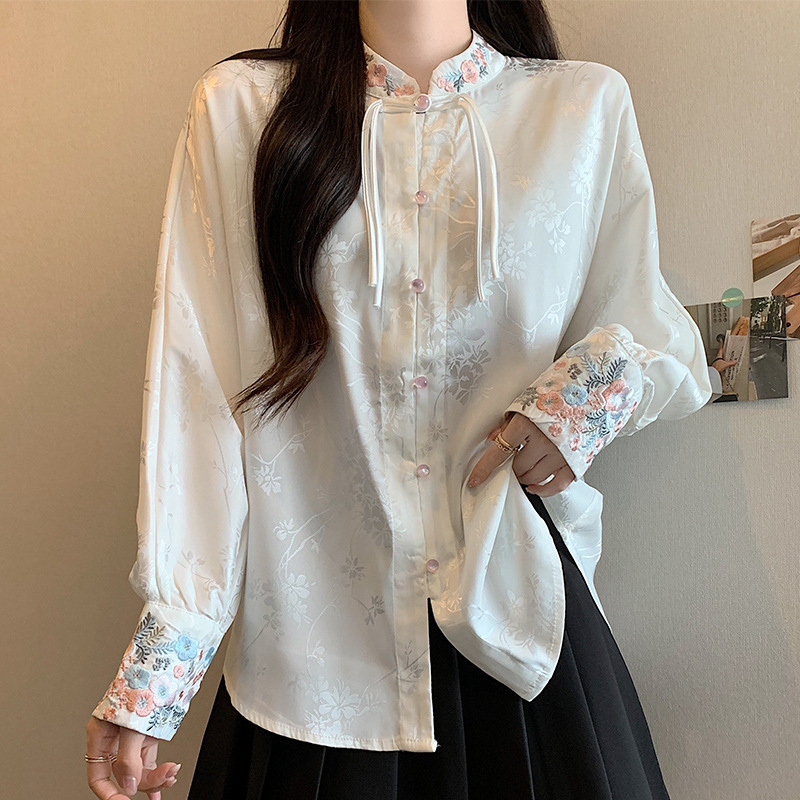 • 흰색 상의 [패셔너블하고 패셔너블한 여성용 플러스 사이즈 상의/뚱뚱한 mm 스트리트 상의/약간 뚱뚱한 소녀/가디건 상의/올해 인기 있는 아름다운 작은 셔츠]