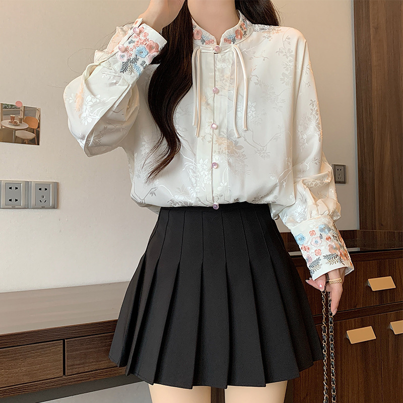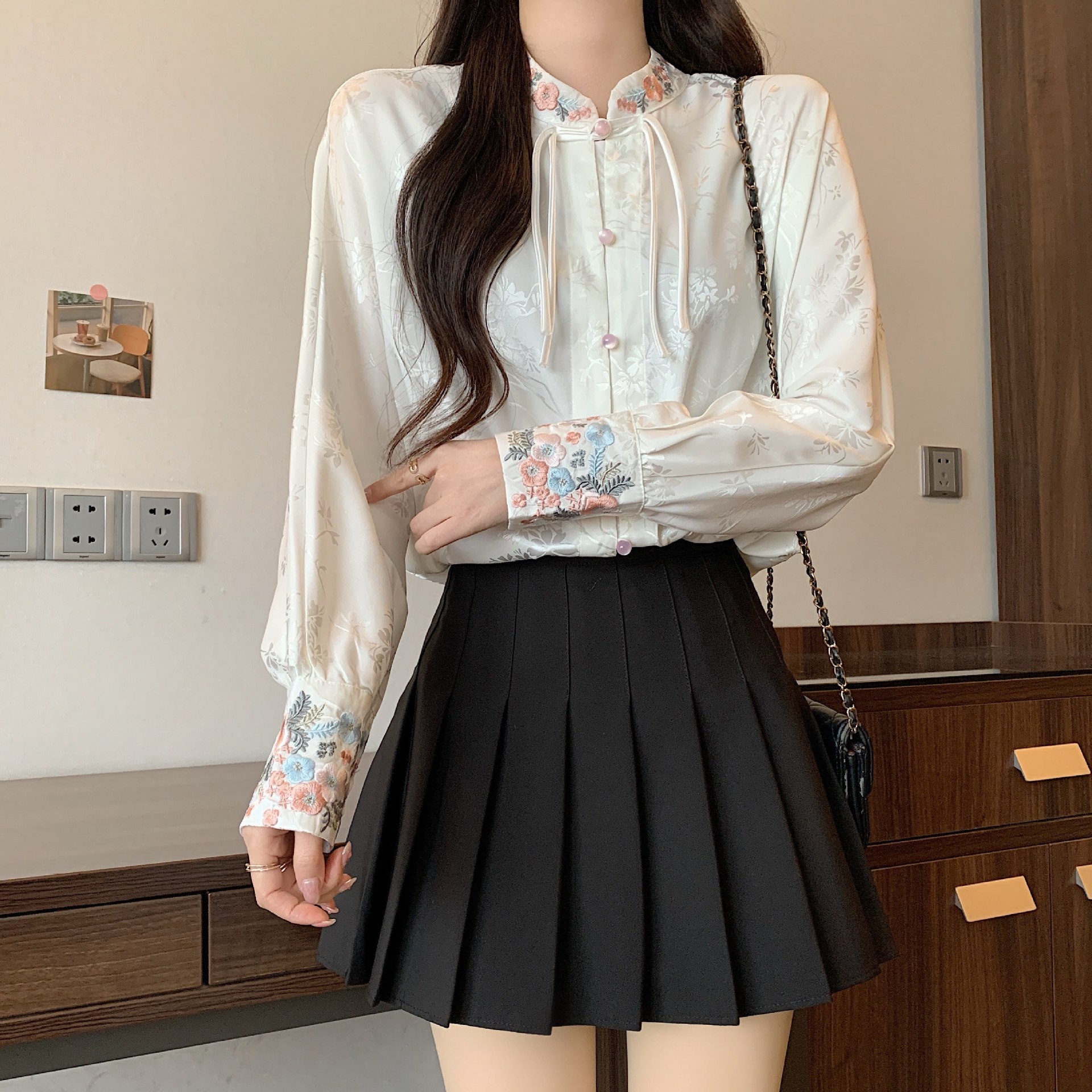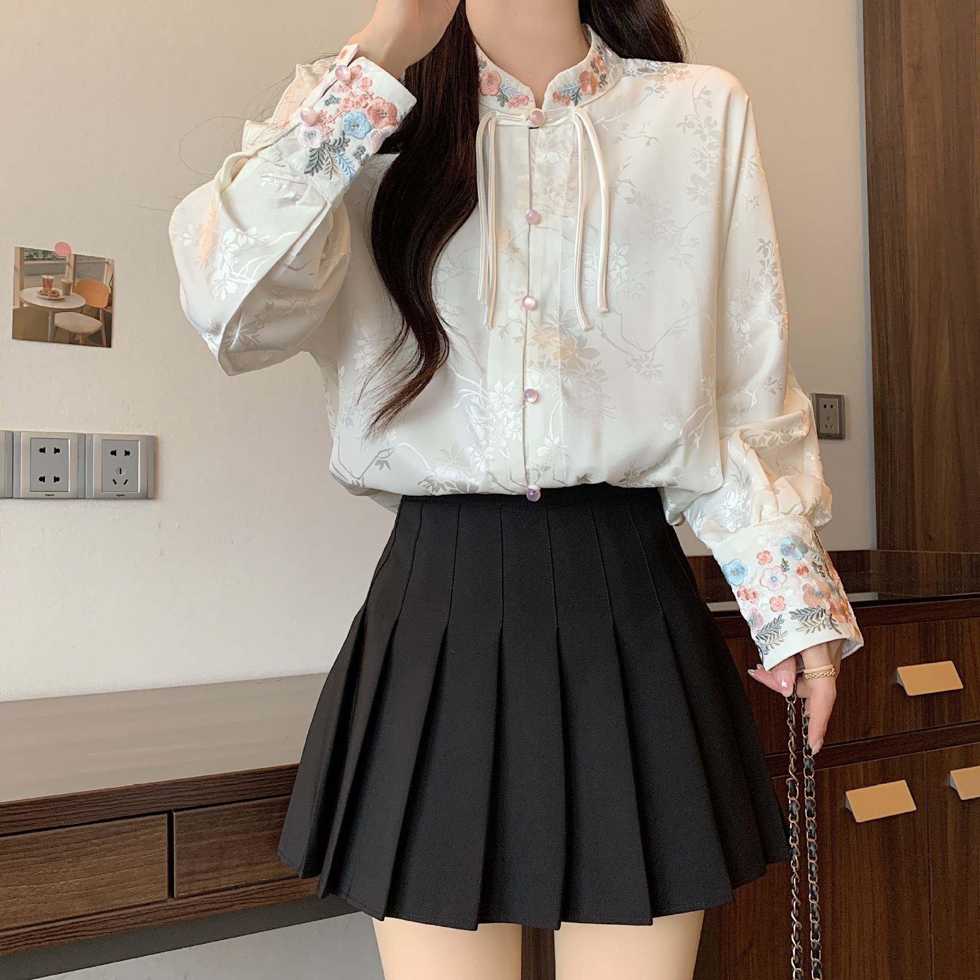 새로운 중국 스타일 셔츠 2025 봄 새로운 통통녀 국가 패션 탑 스커트 나이 감소 슬리밍 세트 여성