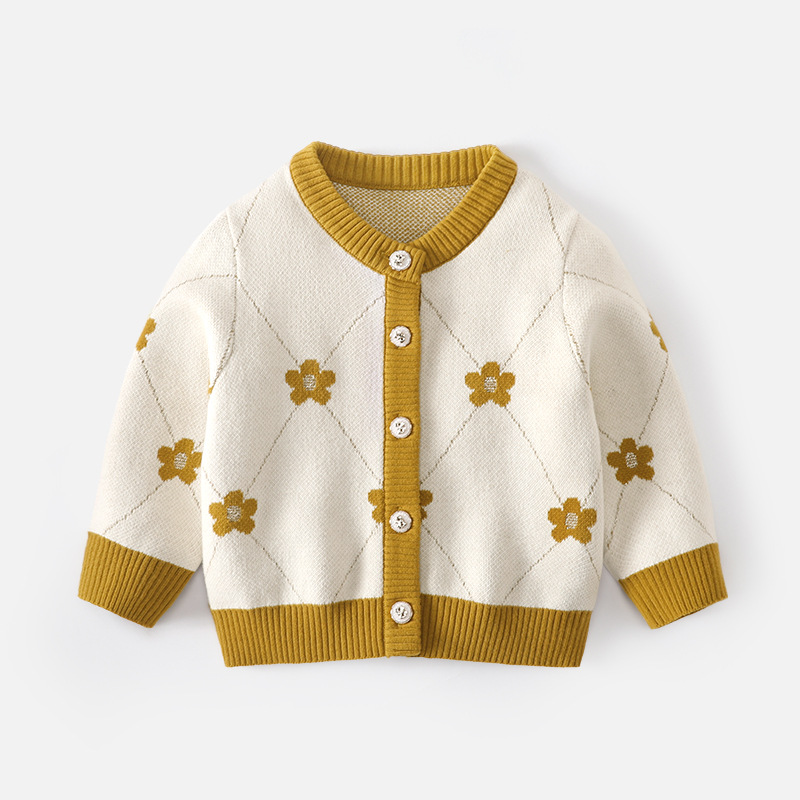 여자 플라워 카디건 뉴 골드 실크 자카드 더블 레이어 싱글 피스 프린세스 클래스 A 코트 베이비 걸스 따뜻한 스웨터
