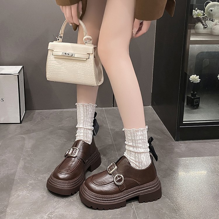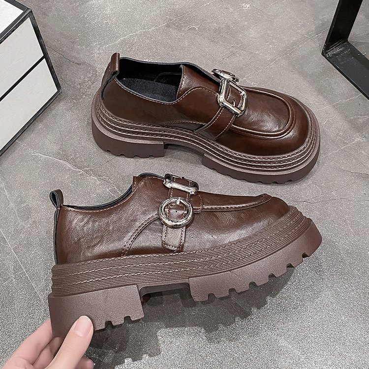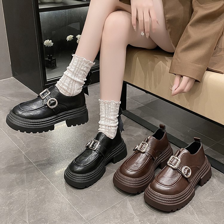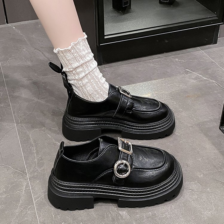 블랙 브리티시 스타일 두꺼운 가죽 신발 여성의 2025 새로운 라운드 토 올 매치 강화 라운드 토 메리 제인 얕은 입 싱글 레이어 신발스토어 가기
