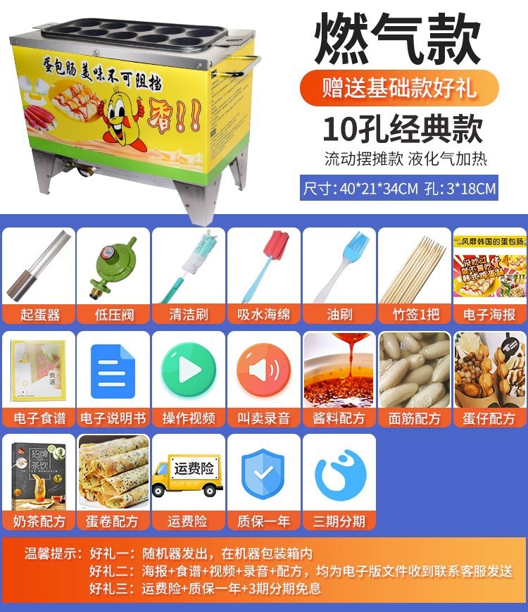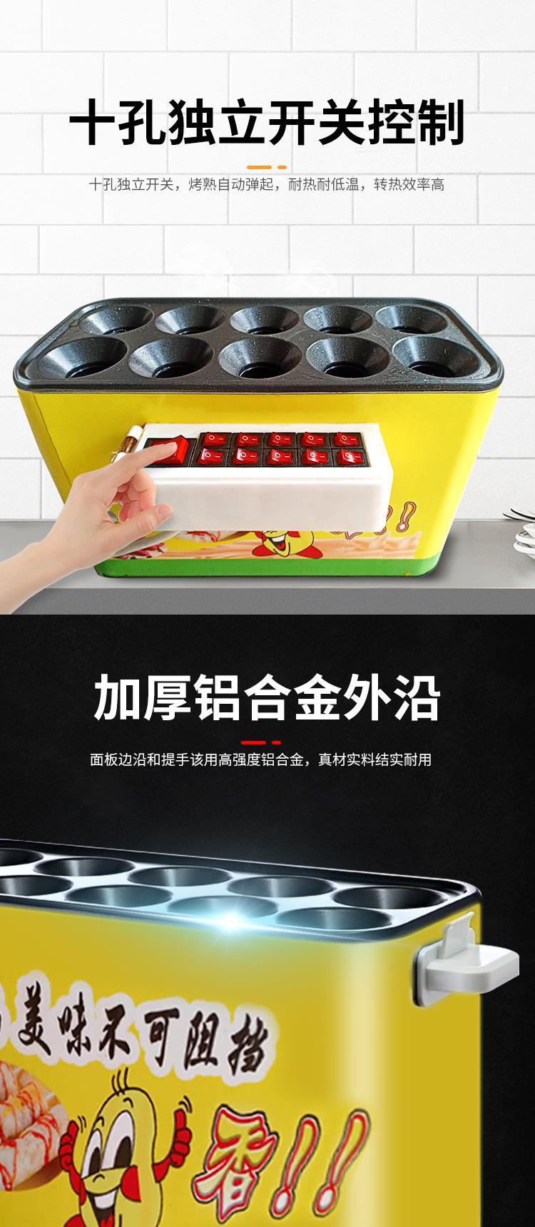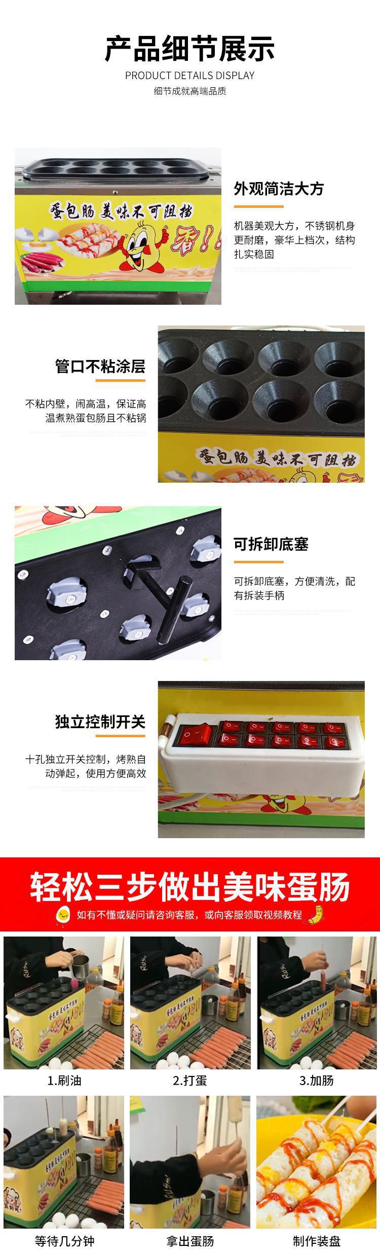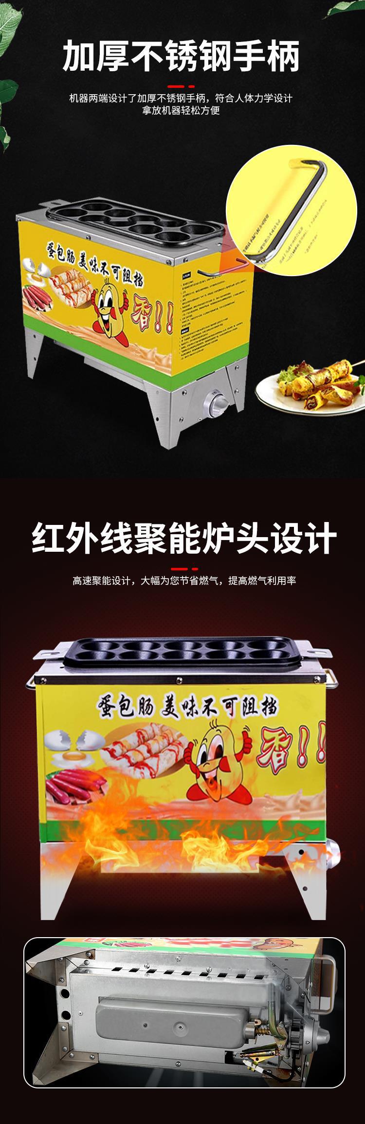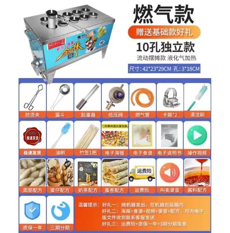 계란 가방 소시지 기계 상업 스톨 스낵 장비 가스 플러그인 10 홀 작은 자동 계란 햄 소시지 기계