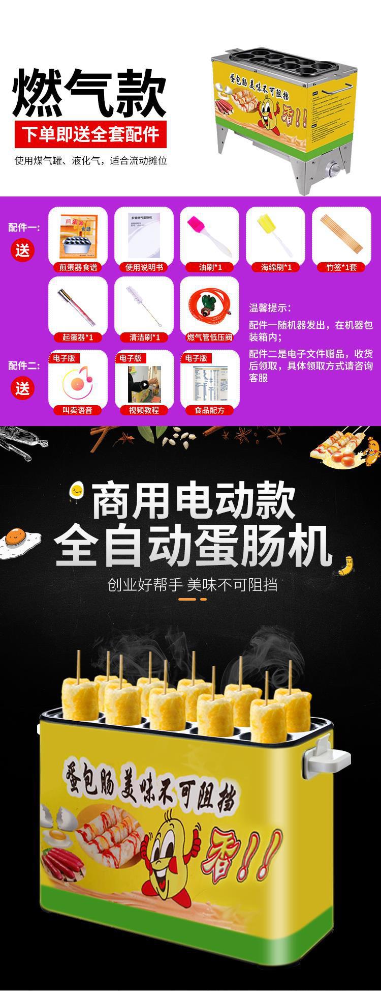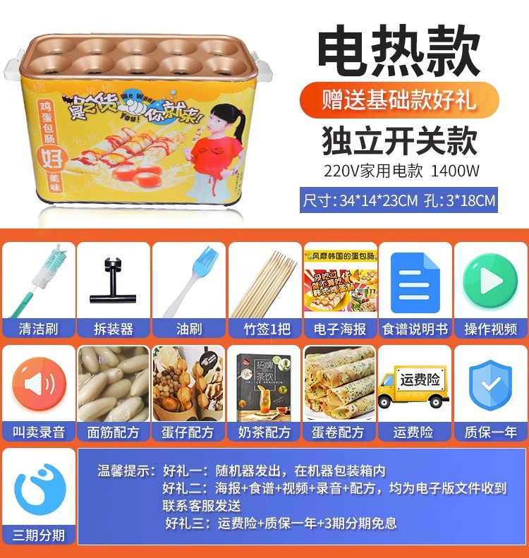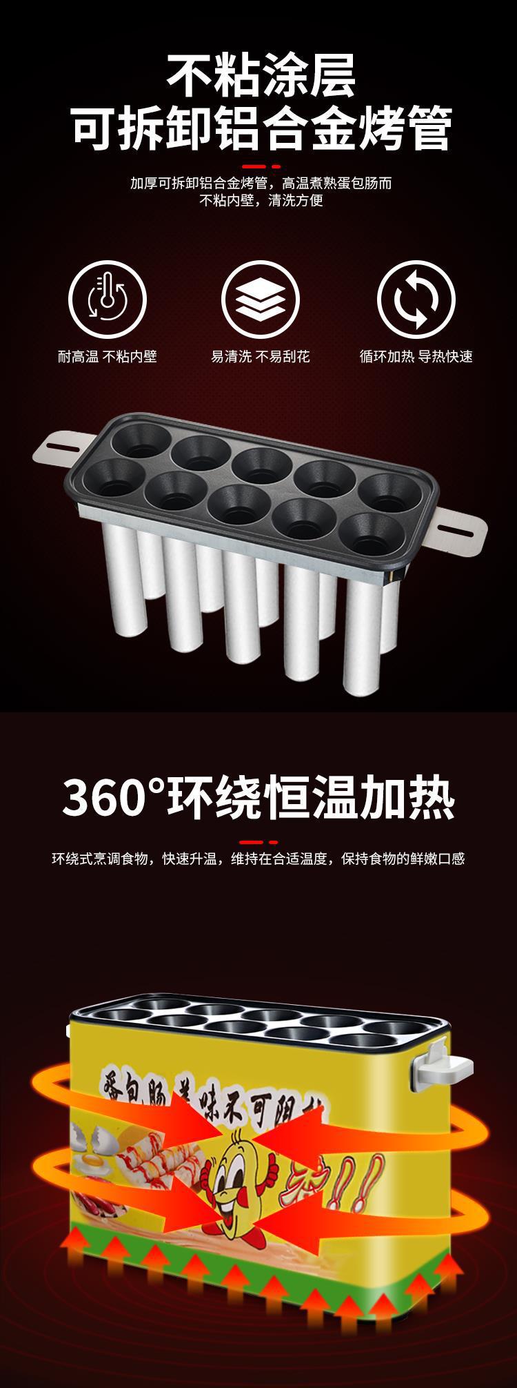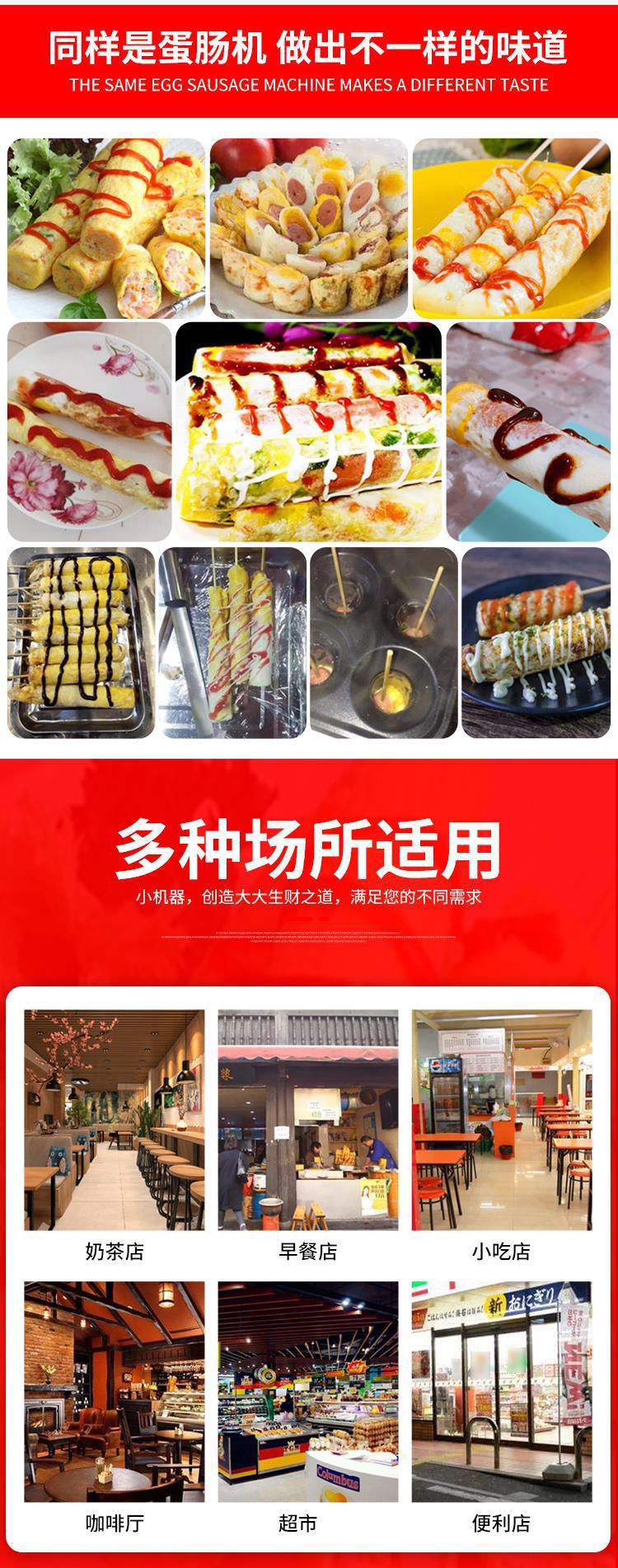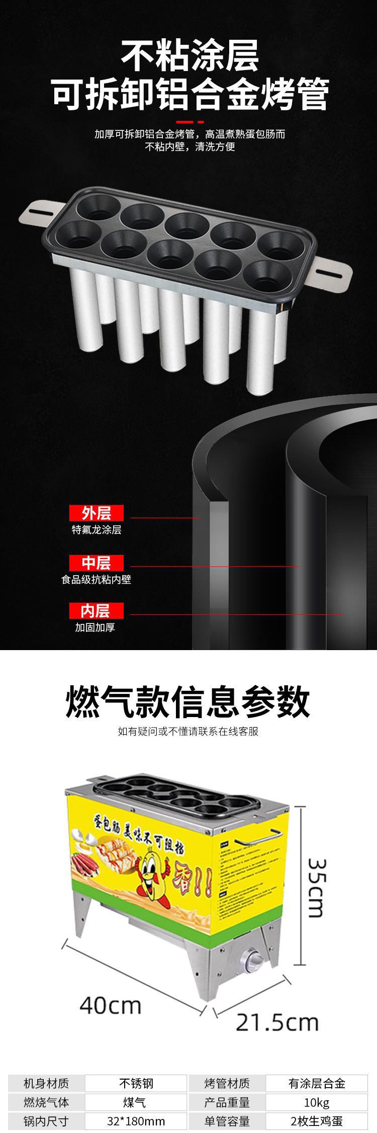 계란 가방 소시지 기계 상업 스톨 스낵 장비 가스 플러그인 10 홀 작은 자동 계란 햄 소시지 기계