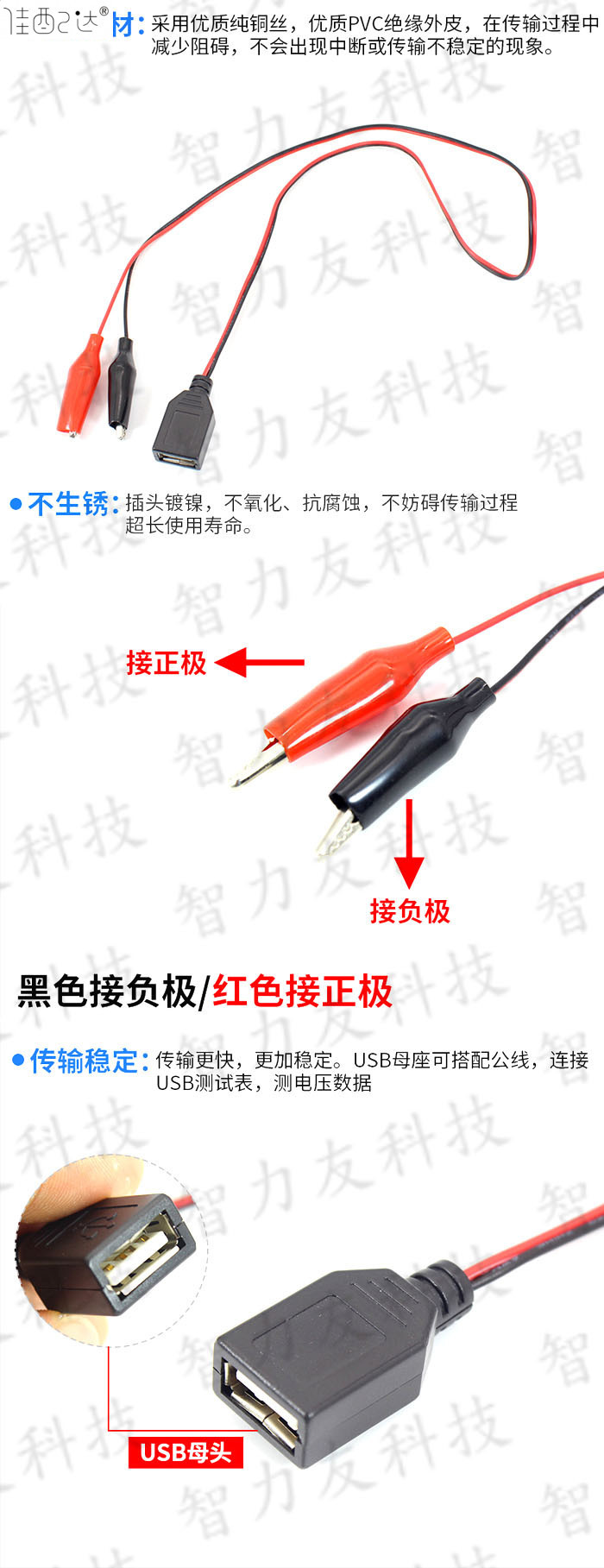 USB 남성 턴 악어 클립 여성 머리베이스 턴 악어 클립 테스트 라인 USB 전원 코드 배터리 전원 클립