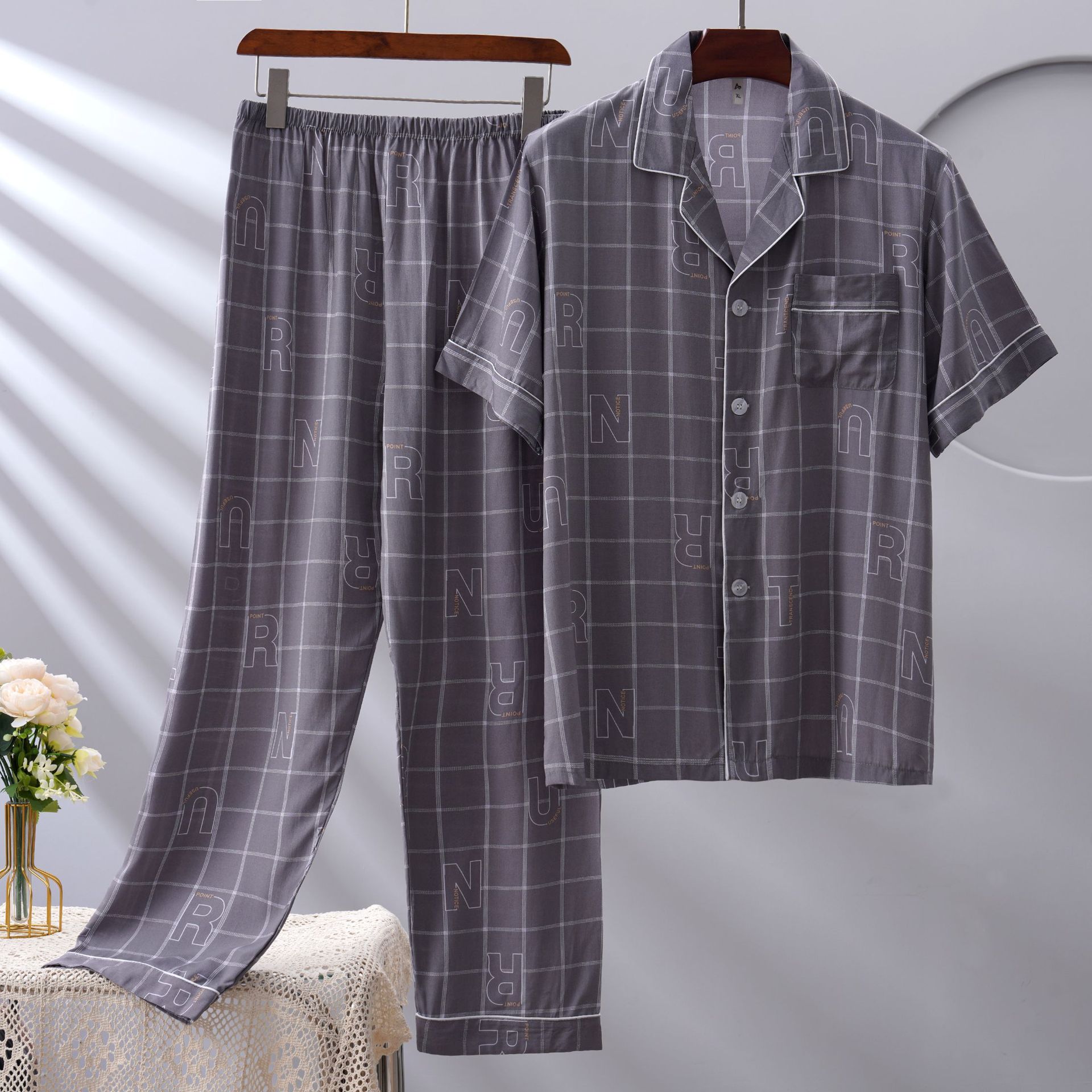 2025 새로운 재고 남성면 실크 봄 여름 짧은 소매 얇은 느슨한 잠옷 간단한 편안한 홈 옷스토어 가기
