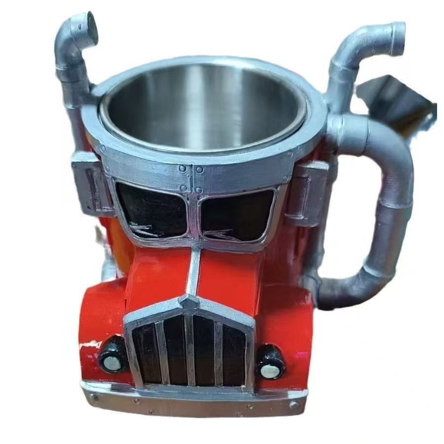 국경 간 핫 세미 트레일러 트럭 커피 컵 창조적 인 홈 오피스 수지 시뮬레이션 워터 컵 장식 머그잔