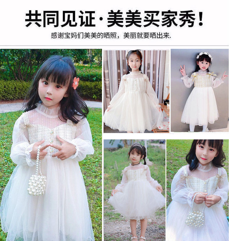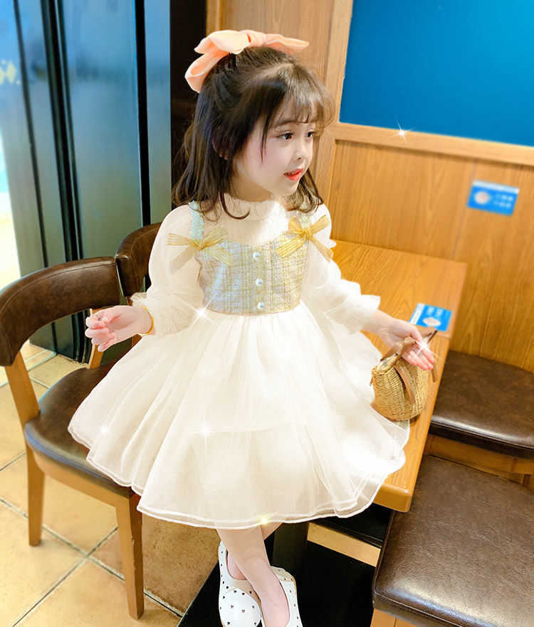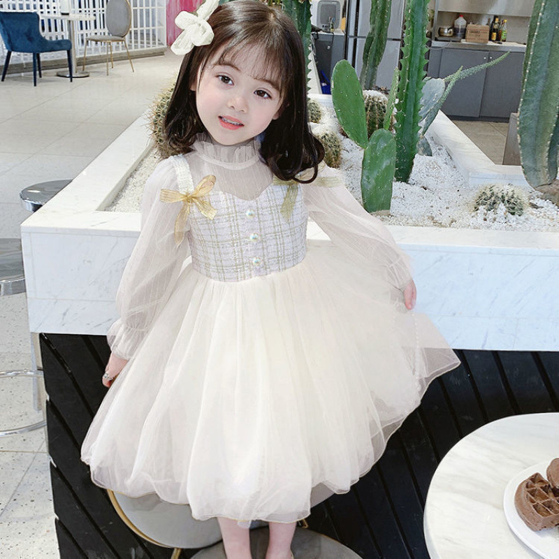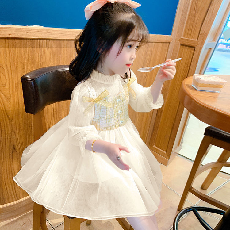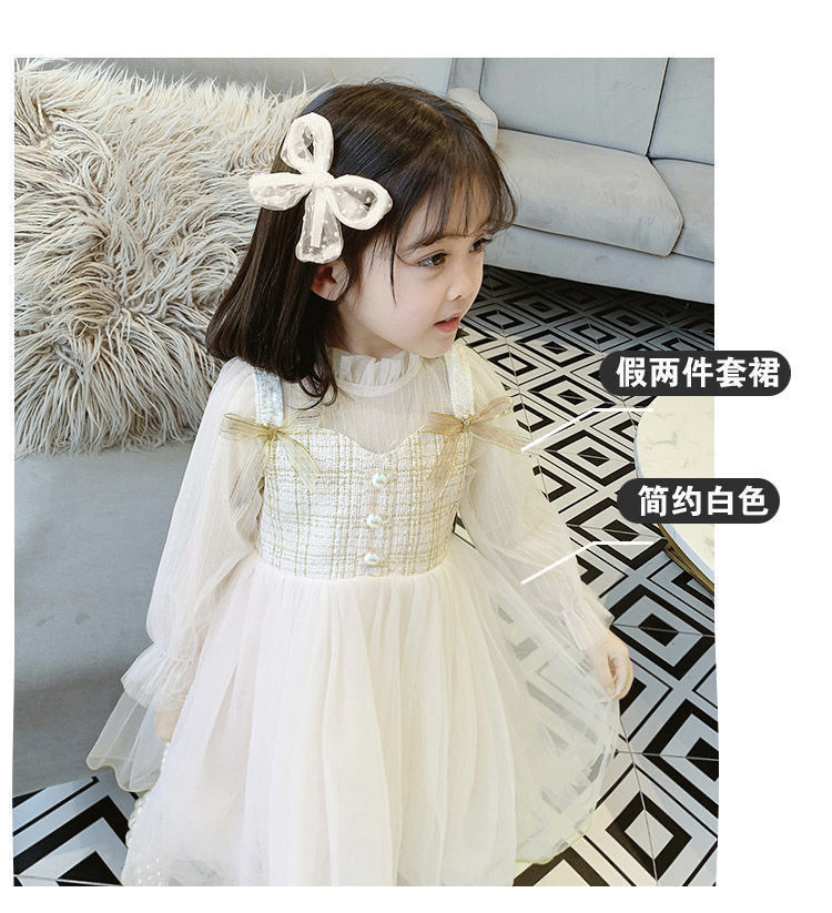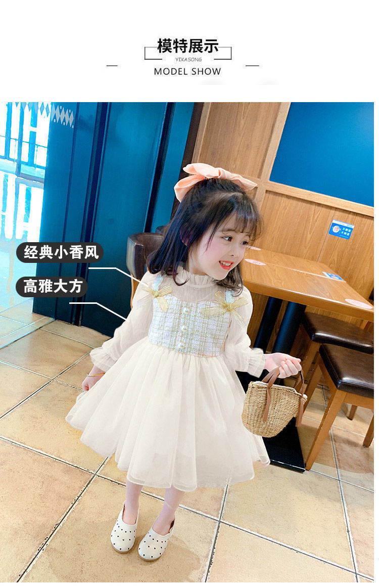 소녀의 샤넬 스타일 메쉬 원피스 공주 원피스 아기의 봄과 가을 원피스 어린이 서양식 긴 소매 요정 원피스 원피스스토어 가기