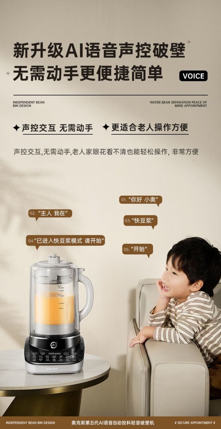 오크 음성 벽 깨는 기계 다기능 난방 빛 톤 콩 우유 기계베이스 필터-무료 과즙 기 요리 기계
