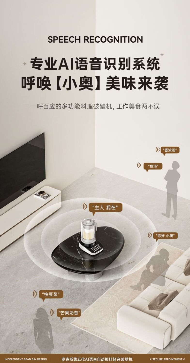 오크 음성 벽 깨는 기계 다기능 난방 빛 톤 콩 우유 기계베이스 필터-무료 과즙 기 요리 기계스토어 가기