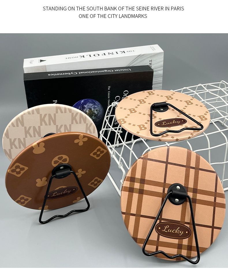 • LUCKY 콜드 브라운 체크 무늬(둥근 거울)