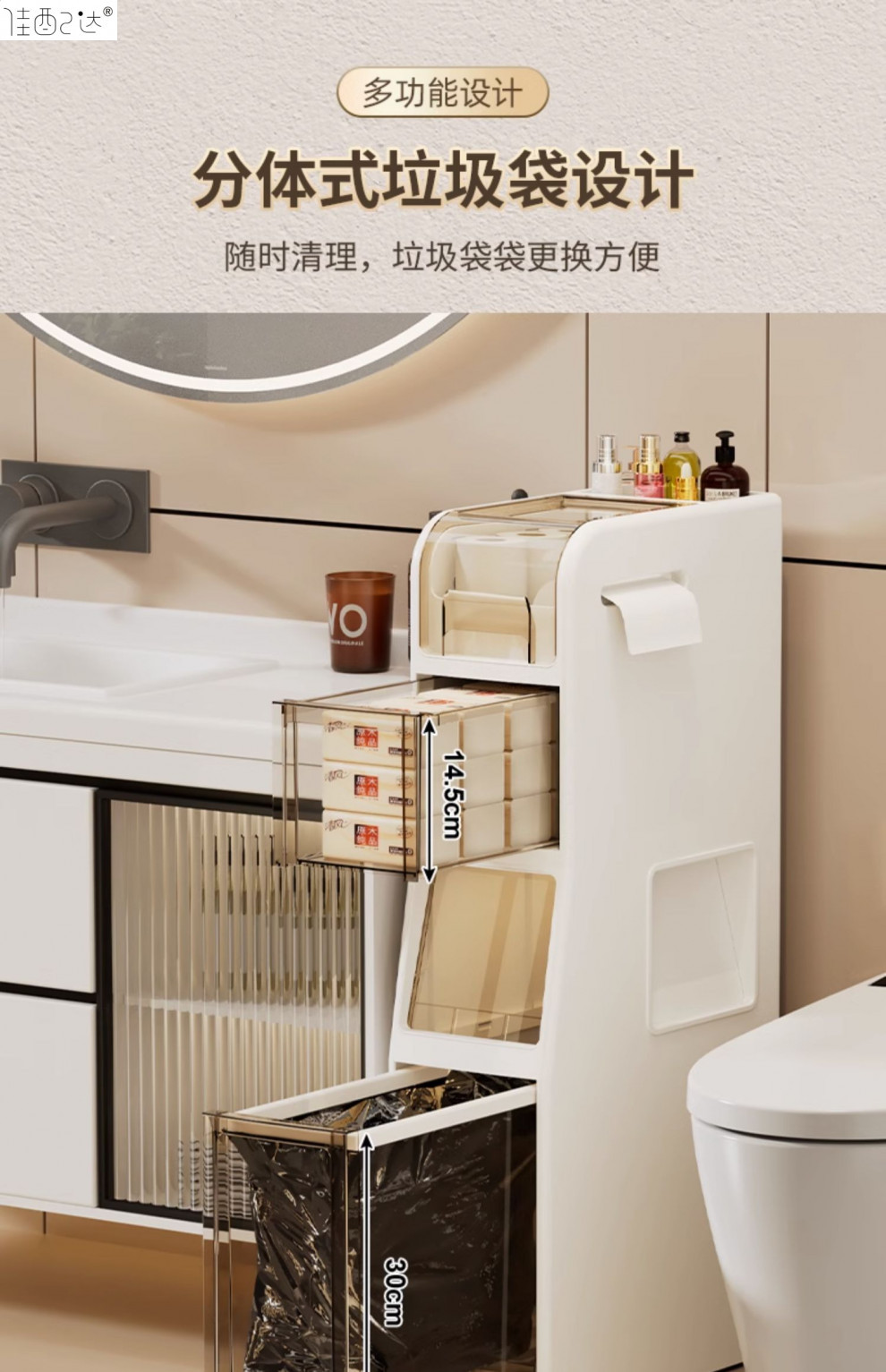 휴지통 화장실이있는 욕실 갭 캐비닛 욕실 보관 랙 화장실 좁은 간격 보관 캐비닛스토어 가기