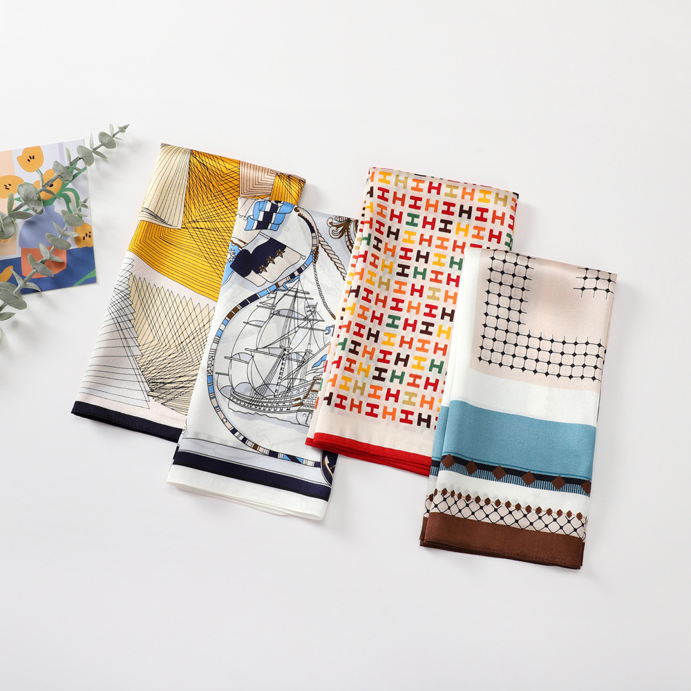 실크 작은 광장 스카프 53cm 뽕나무 실크 스카프 여성 항해 인쇄 일반 크레페 새틴 스카프 항주 실크 목도리 도매