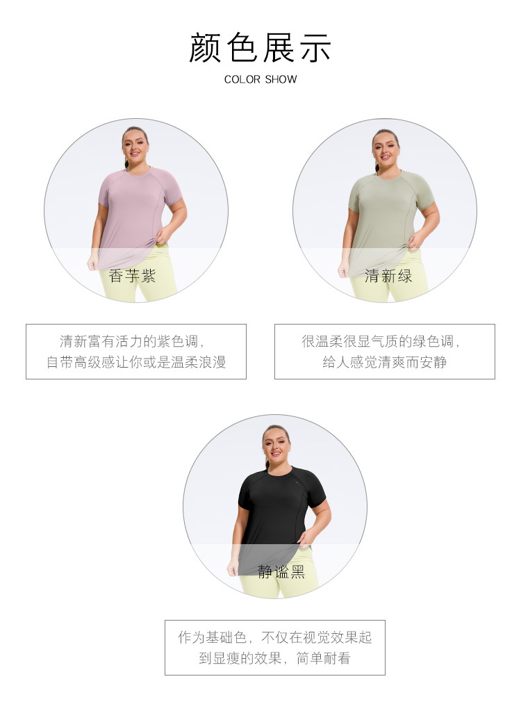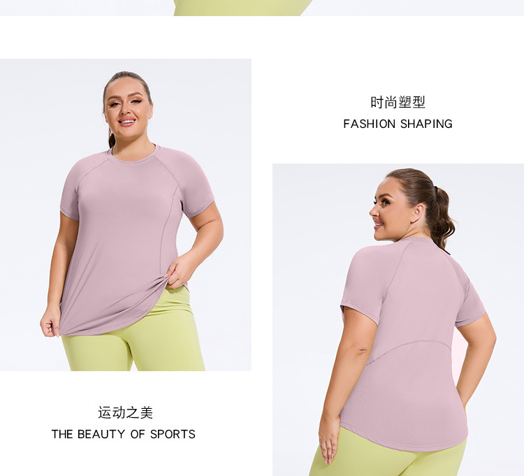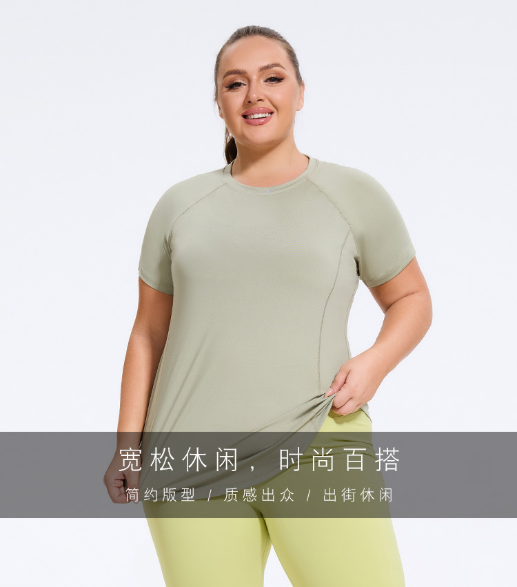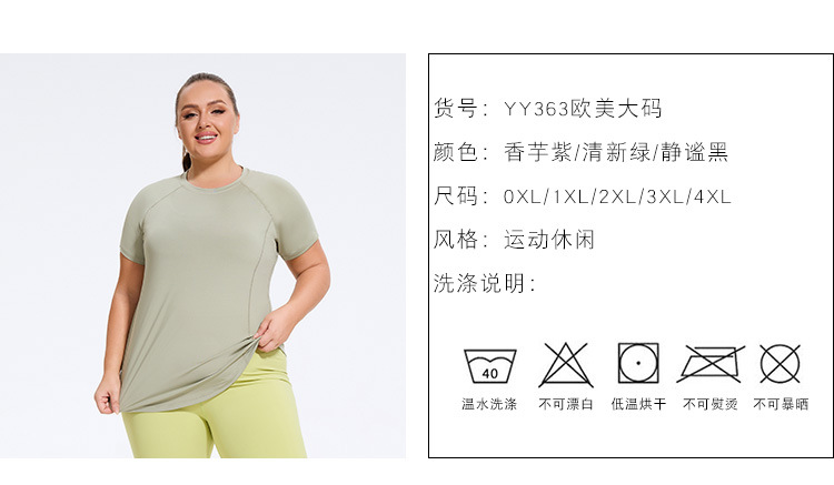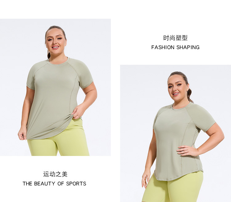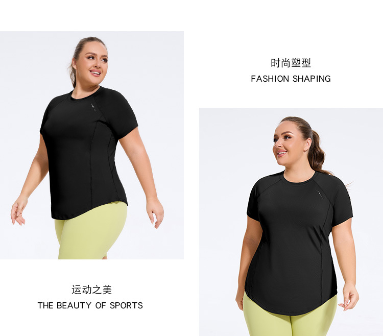 유럽과 미국의 플러스 사이즈 느슨한 스포츠 탑 여성 티셔츠 빠른 건조 옷 통기성 슬리밍 피트니스 옷 실행 요가 옷 짧은 소매