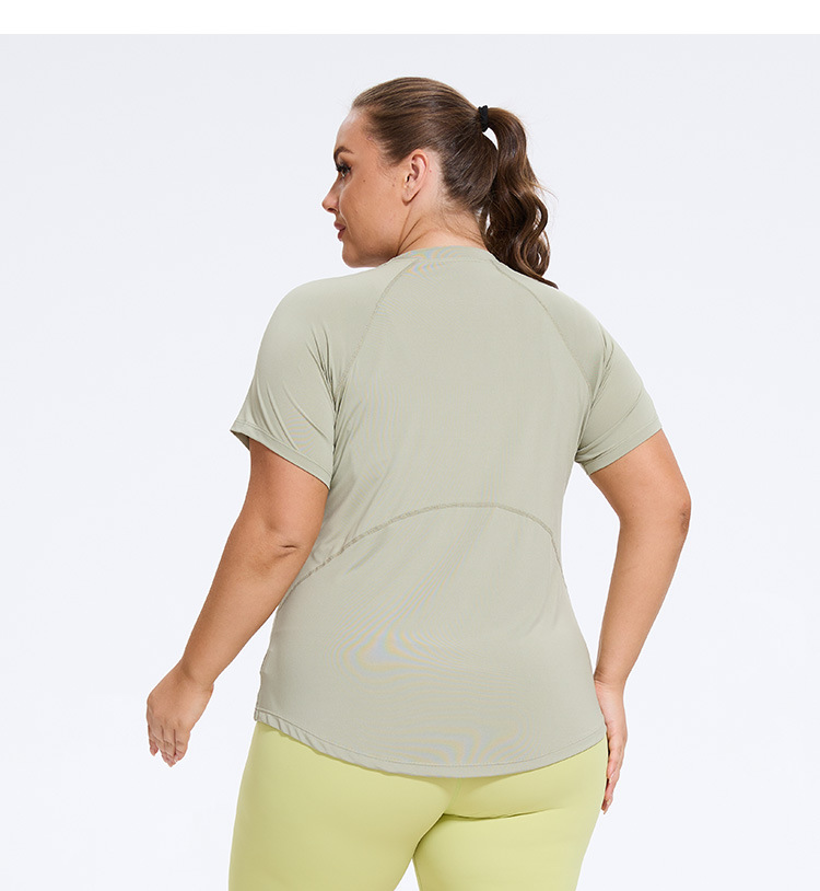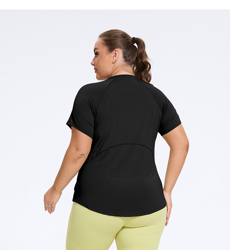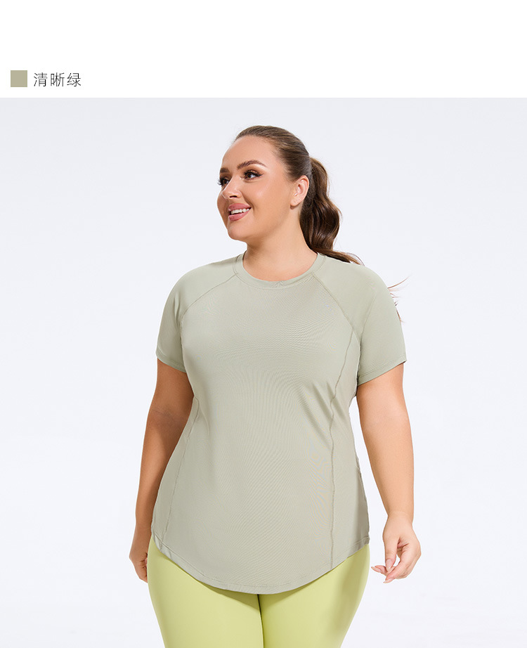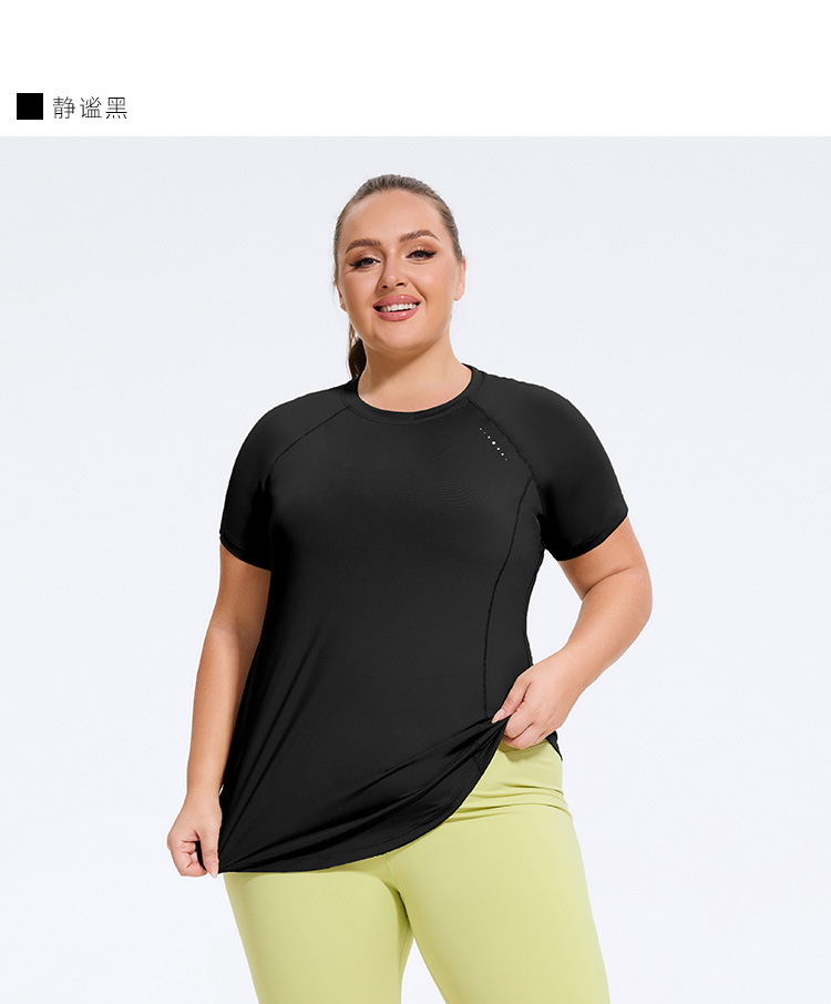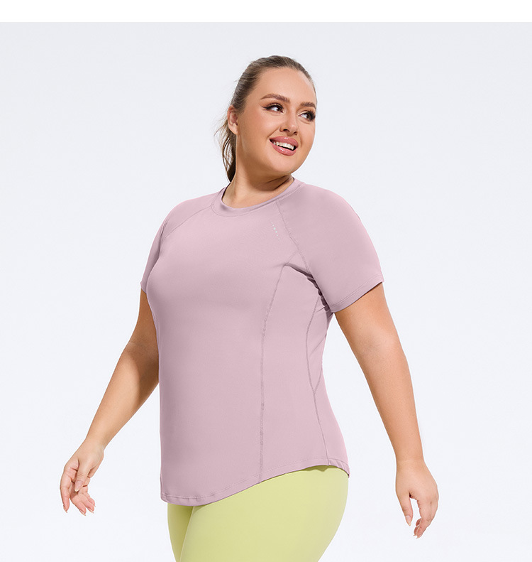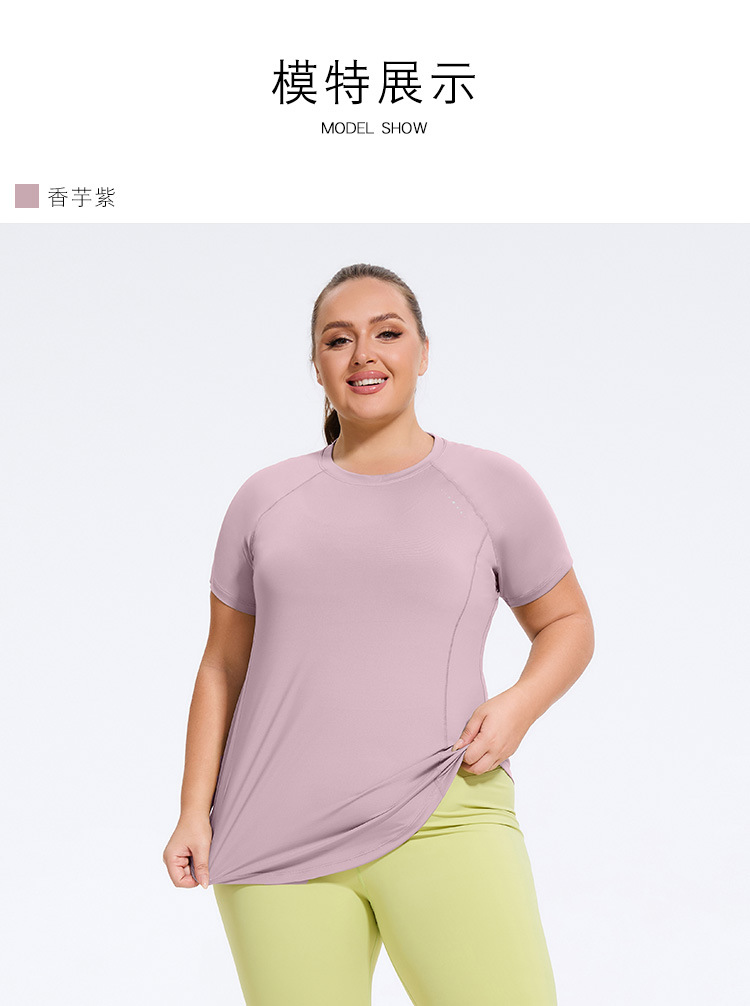 유럽과 미국의 플러스 사이즈 느슨한 스포츠 탑 여성 티셔츠 빠른 건조 옷 통기성 슬리밍 피트니스 옷 실행 요가 옷 짧은 소매