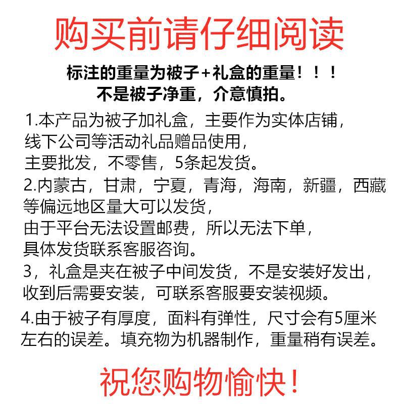 被子为丝棉化纤被子,不含蚕丝,5条起拍赠送礼盒