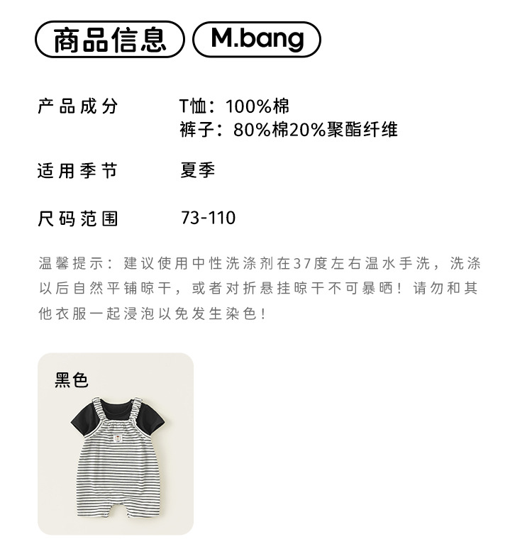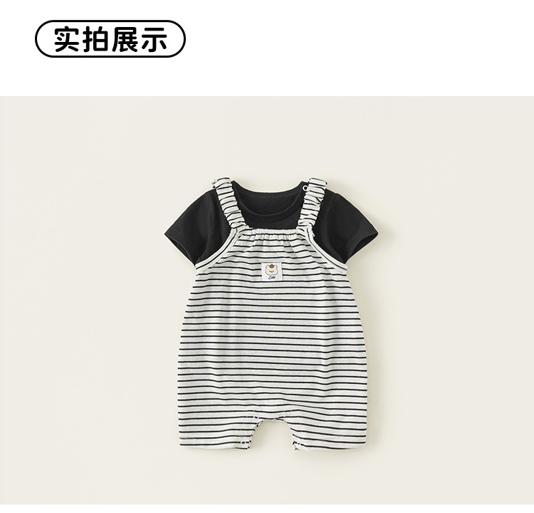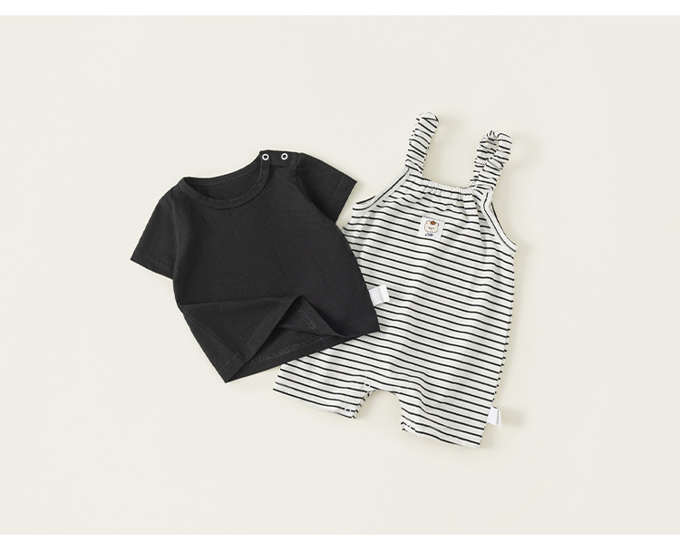봉 셀렉션 아동복 여름 올매치 세트 심플 솔리드 컬러 반팔 티셔츠 남성 아기 스트라이프 투피스 세트