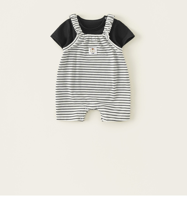 봉 셀렉션 아동복 여름 올매치 세트 심플 솔리드 컬러 반팔 티셔츠 남성 아기 스트라이프 투피스 세트스토어 가기