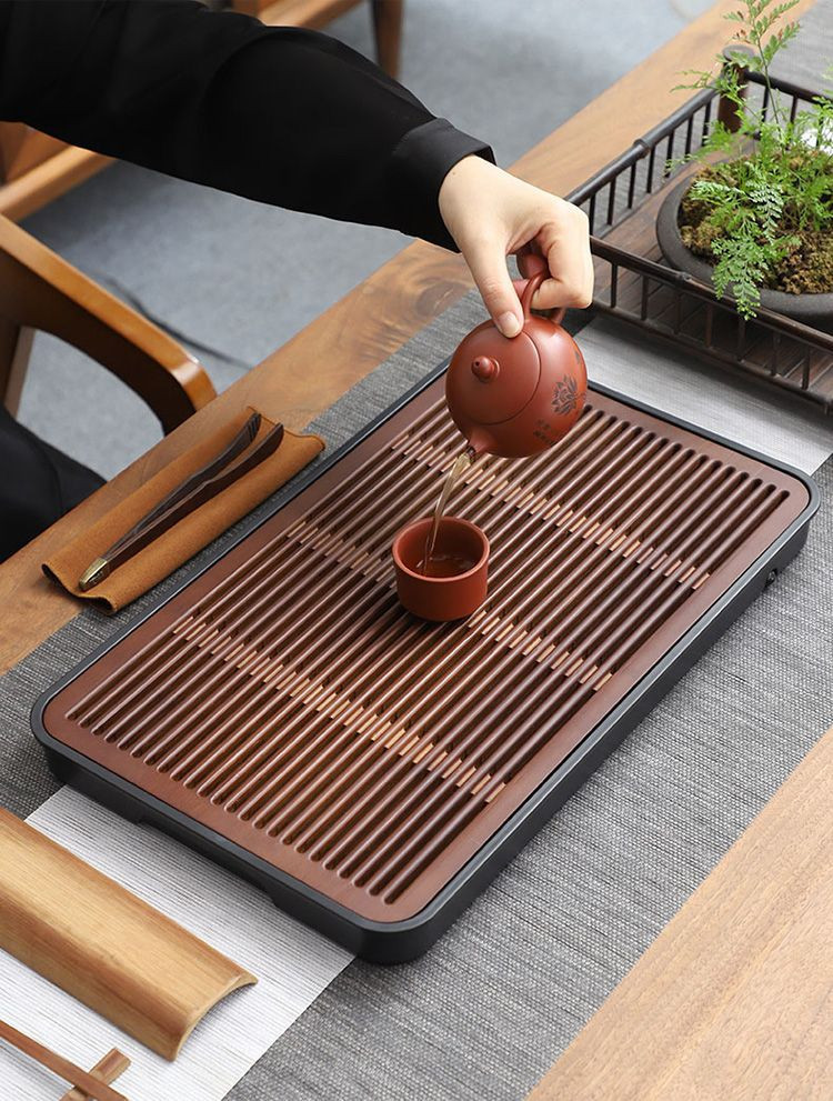 새로운 차 쟁반 새로운 가정용 저장 및 배수 이중 목적 직사각형 쿵푸 차 세트 트레이 건조 양조 차 테이블 작은