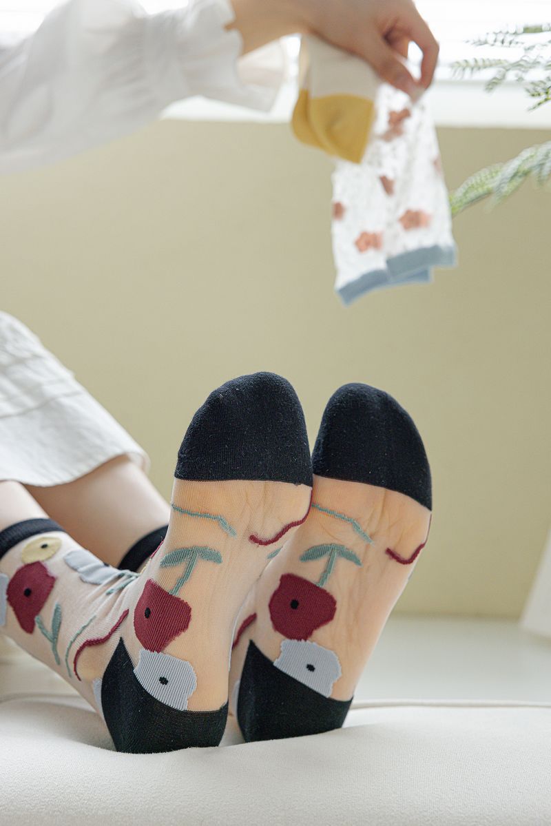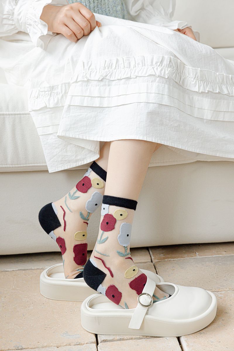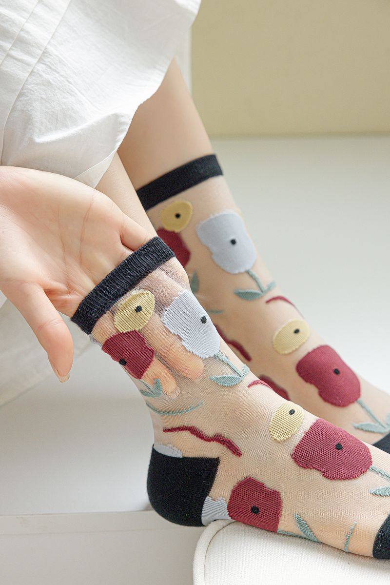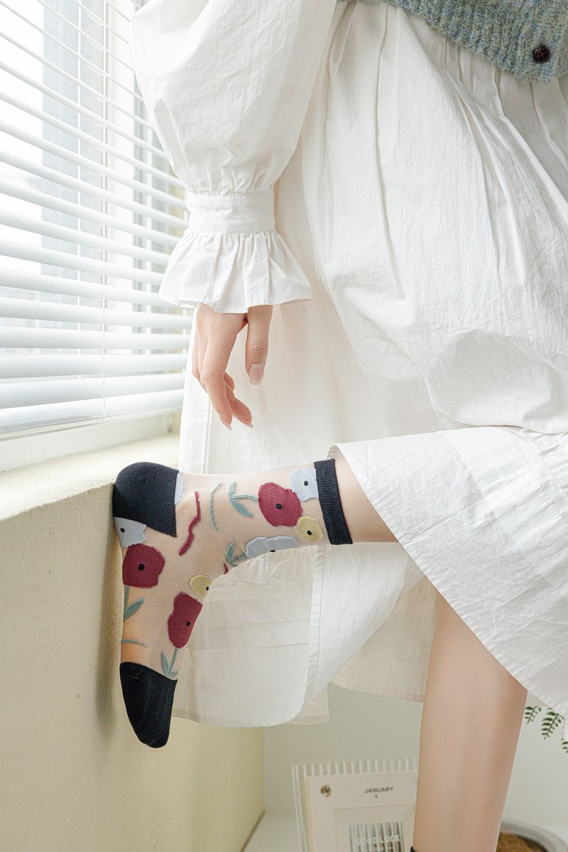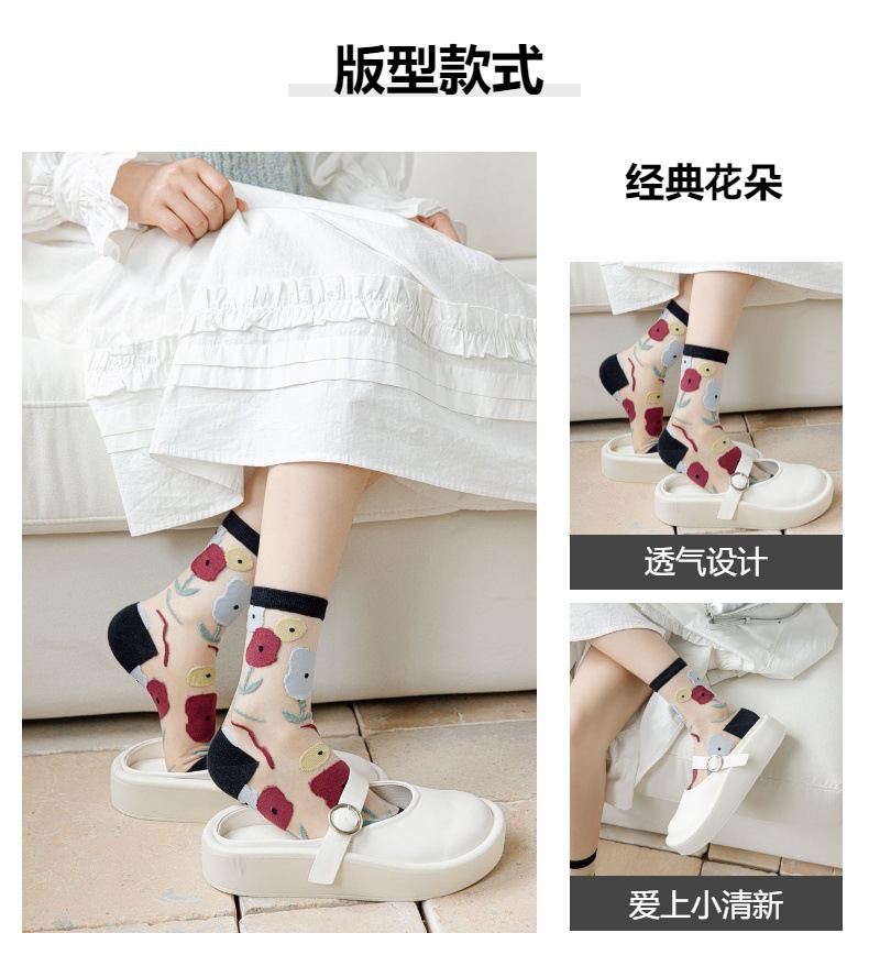 양말 여성 여름 튜브 양말 투명 크리스탈 유리 실크 여성 양말 도매 인 트렌드 카드 스타킹 Zhuji스토어 가기