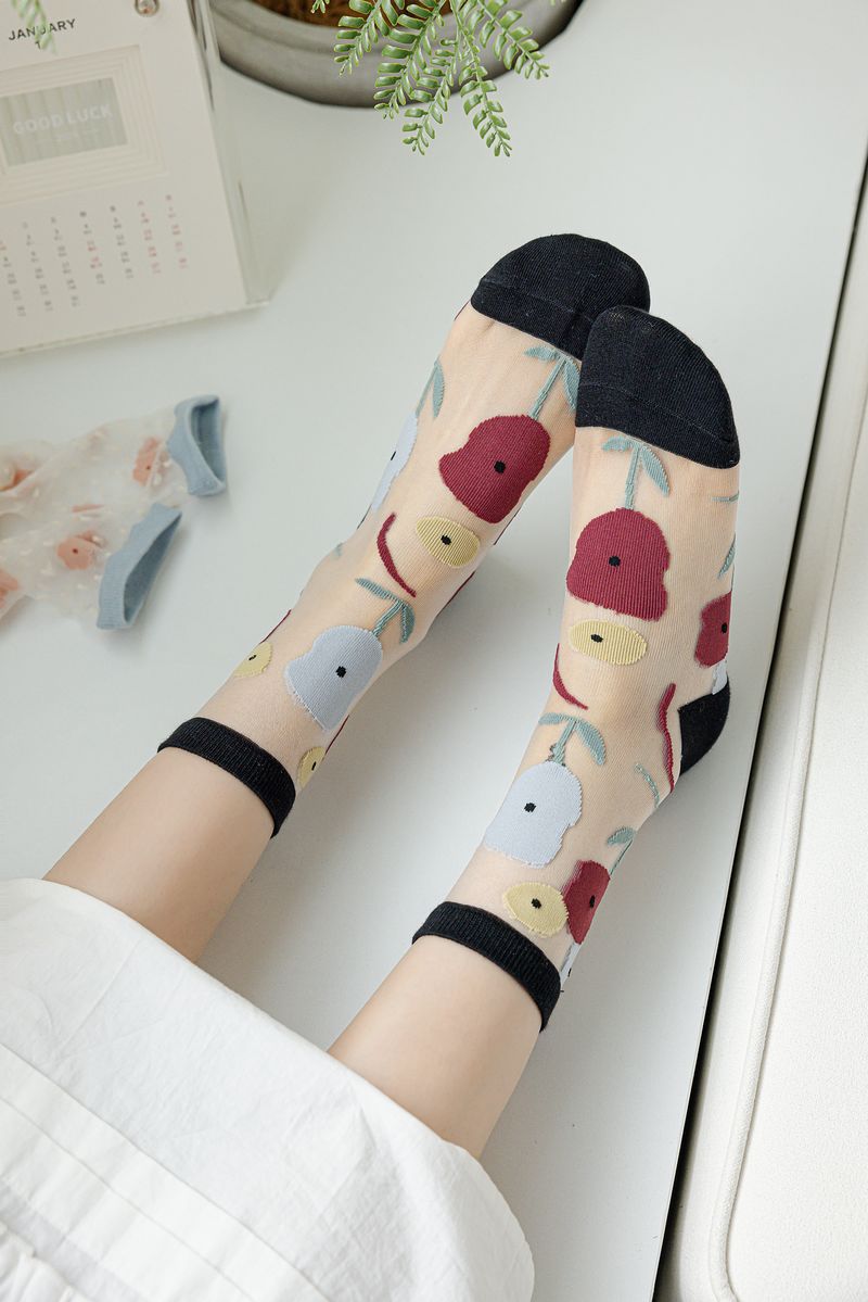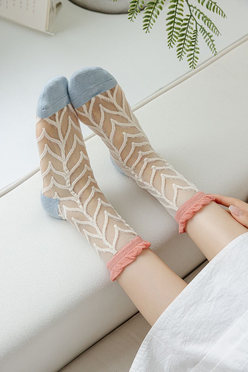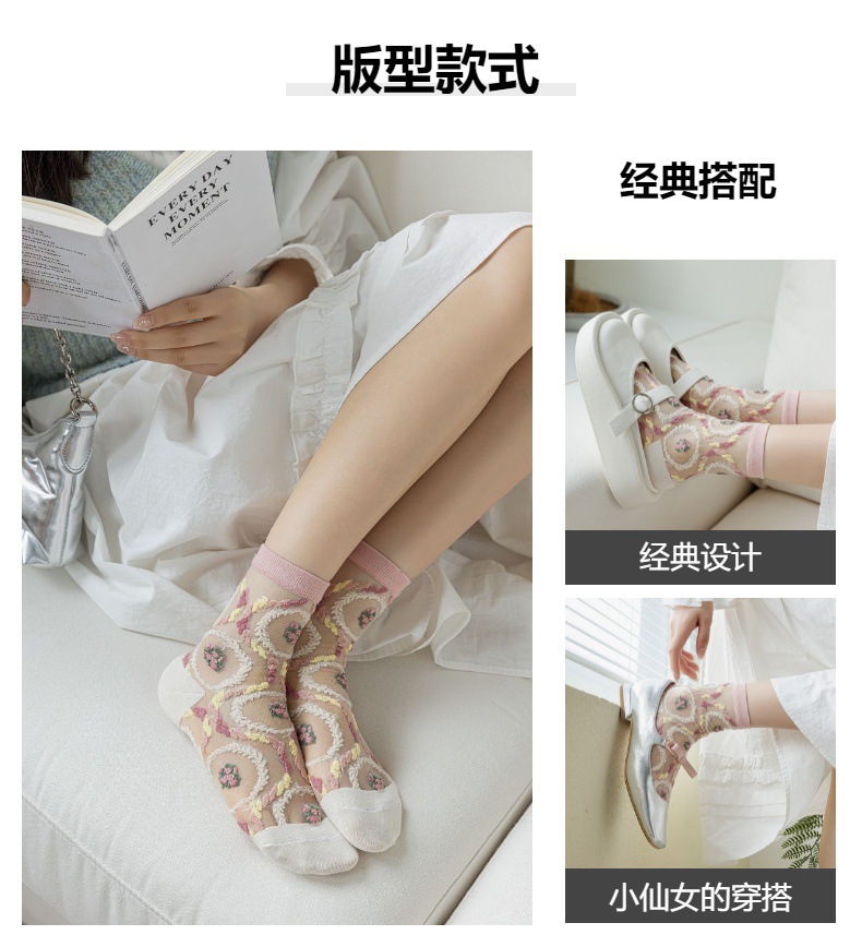 양말 여성 여름 튜브 양말 투명 크리스탈 유리 실크 여성 양말 도매 인 트렌드 카드 스타킹 Zhuji